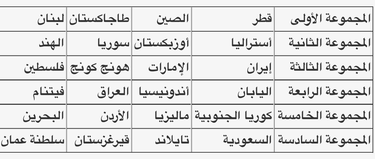 ويشمل المستوى الثالث منتخبات البحرين وسوريا وفلسطين ولبنان وفيتنام وقيرغيزستان بينما تأتي في المستوى الرابع منتخبات الهند وطاجيكستان وتايلاند وماليزيا وهونج كونج وإندونيسيا.