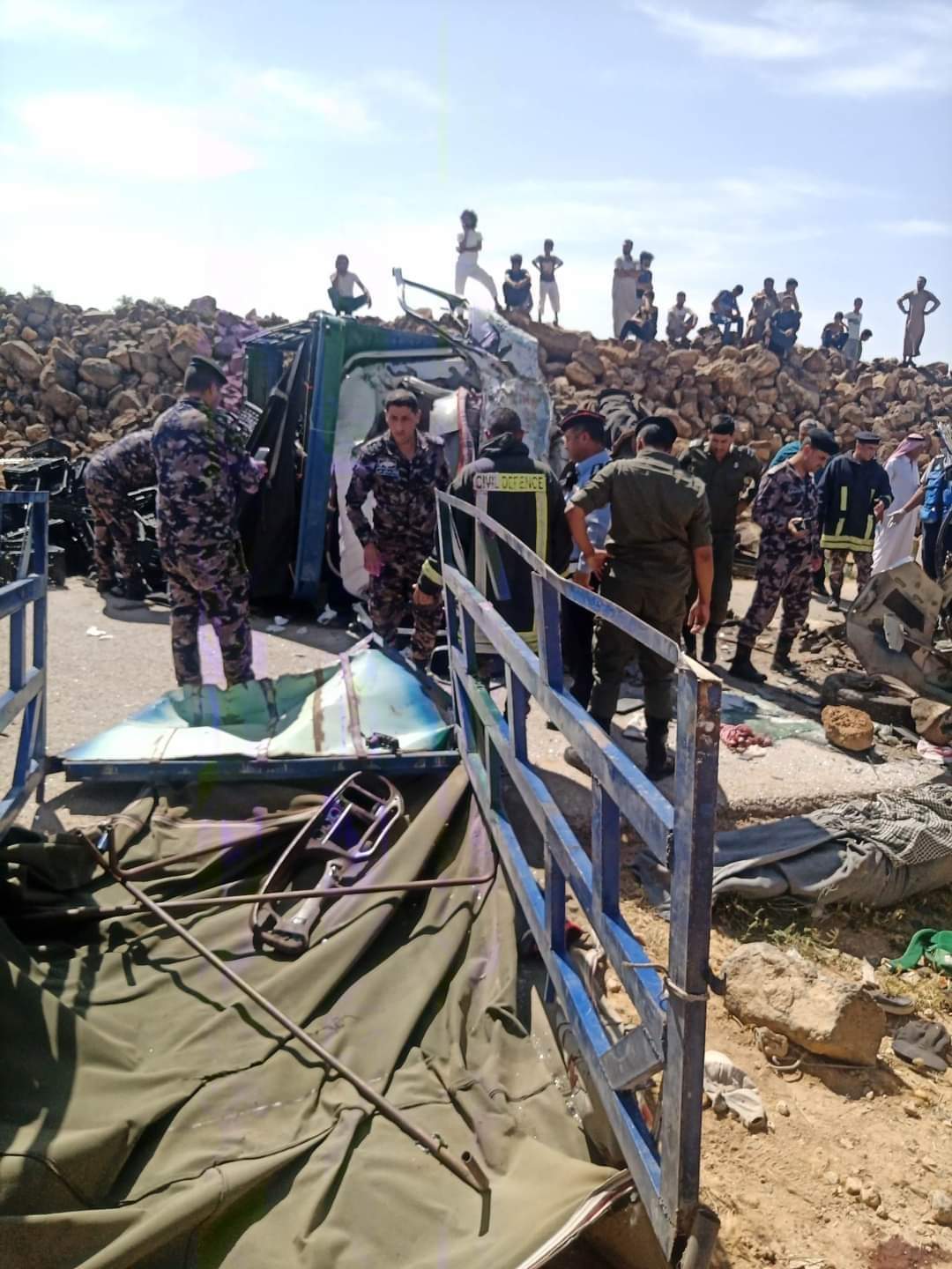 وقال مصدر أمني ان كوادر الدفاع المدني تعاملت مع الحادث حيث توفي 8 أشخاص وأصيب 15 آخرون جراء حادث تصادم مروع وقع بين مركبة شحن تحمل عمال على طرق البادية الشمالية في محافظة المفرق.