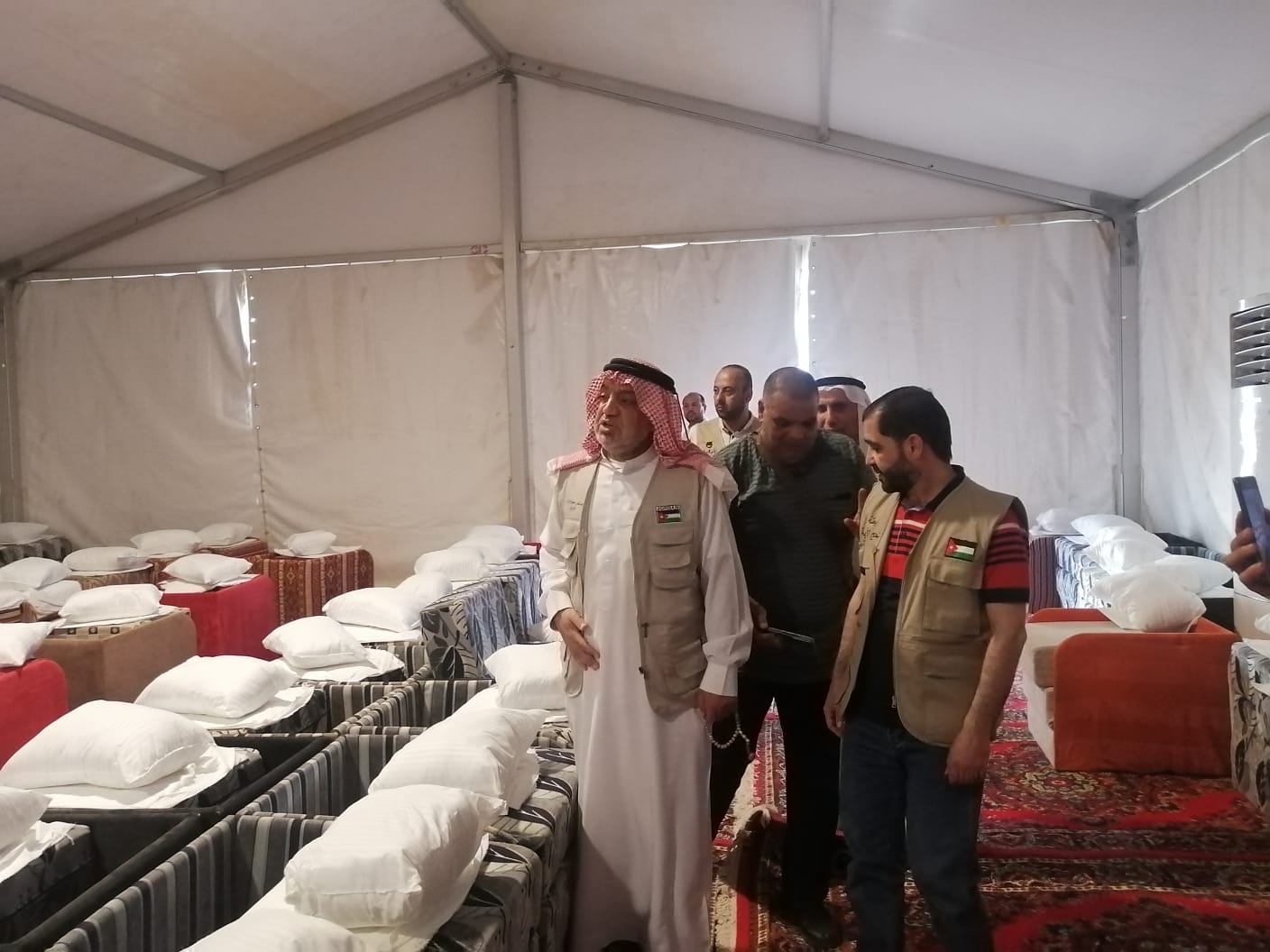 وجال الخلايلة في مخيمات استقبال ومبيت الحجاج في عرفة، للاطلاع على تجهيزات خيم الحجاج التي من شأنها توفير سبل الراحة لهم خلال فترة تواجدهم في هذه المشاعر، ومنها تجهيزات تعتمد لأول مرة.