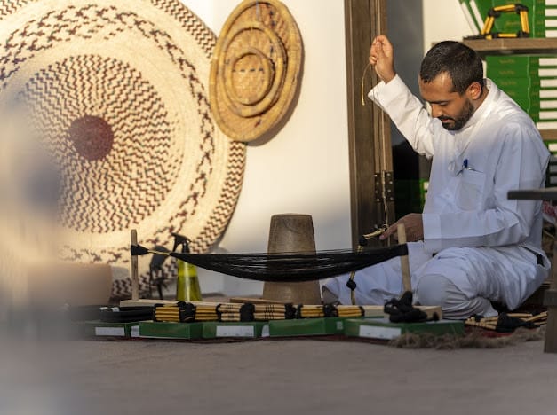 عمانيات - لفت ركن صناعة العُقُل بجناح المملكة العربية السعودية المشارك في مهرجان جرش للثقافة والفنون 2023 في المملكة الأردنية الهاشمية، زوار المهرجان بدورته 37، نسبةً إلى الطريقة اليدوية القديمة التي يصنع بها العُقُل التقليدية، والعِقال "الزري" بالطريقة الخاصة والمطعّم بخيوط الذهب.