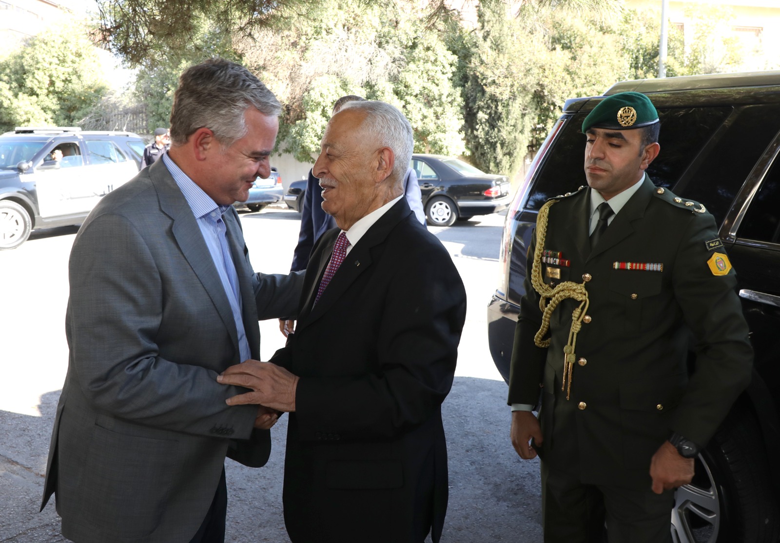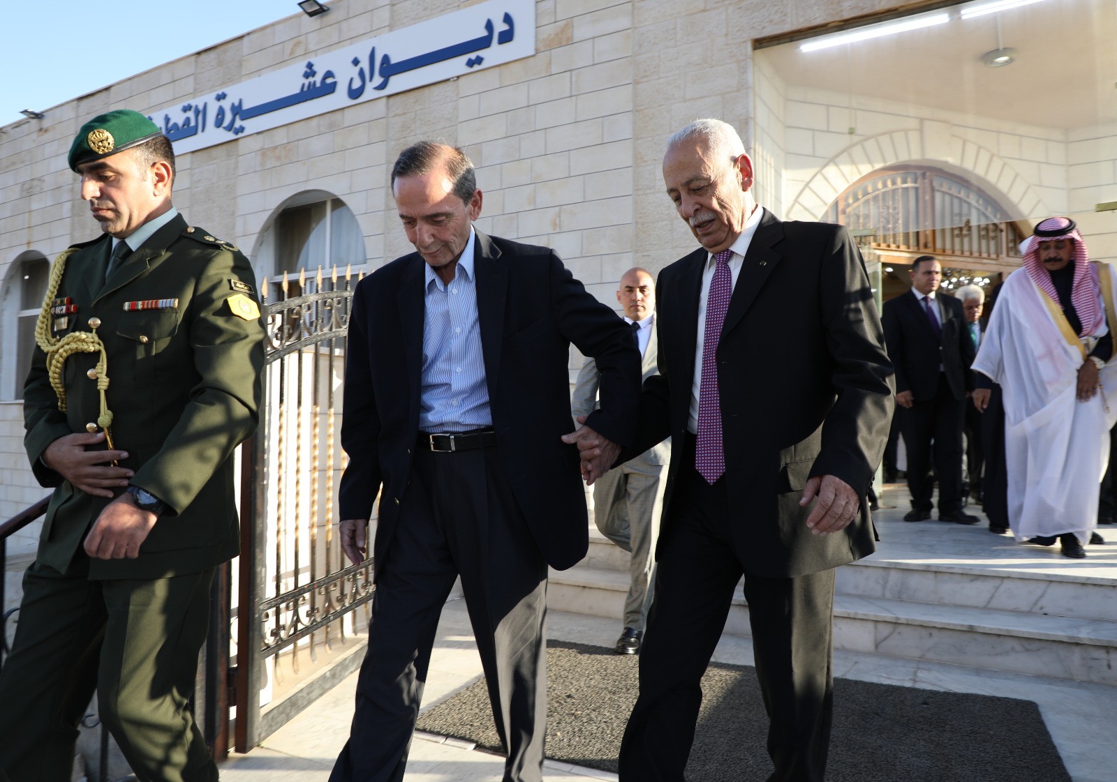 عمانيات - مندوبا عن جلالة الملك عبدالله الثاني ابن الحسين وسمو ولي العهد قدم رئيس الديوان الملكي الهاشمي يوسف حسن العيسوي واجب العزاء اليوم الإثنين الموافق 18-9-2023 بالمرحومة سهام علمي الحاج فوز النابلسي ( ام محمد صفا) والمرحومة الحاجة صيتة عليان باشا الكايد والدة سعادة السفير محمد الكايد وسعادة عبد الفتاح الكايد، والمرحومة لينا عبدالله الرحيم الحياري " ام راكان " زوجة السيد خليل محمود ظاهر النسور ، كما قدم معالية التعازي بوفاة المرحوم صالح الخريسات ابوحمزة" ،والمرحوم حسن راشد الرحاحلة "ابو غالب "