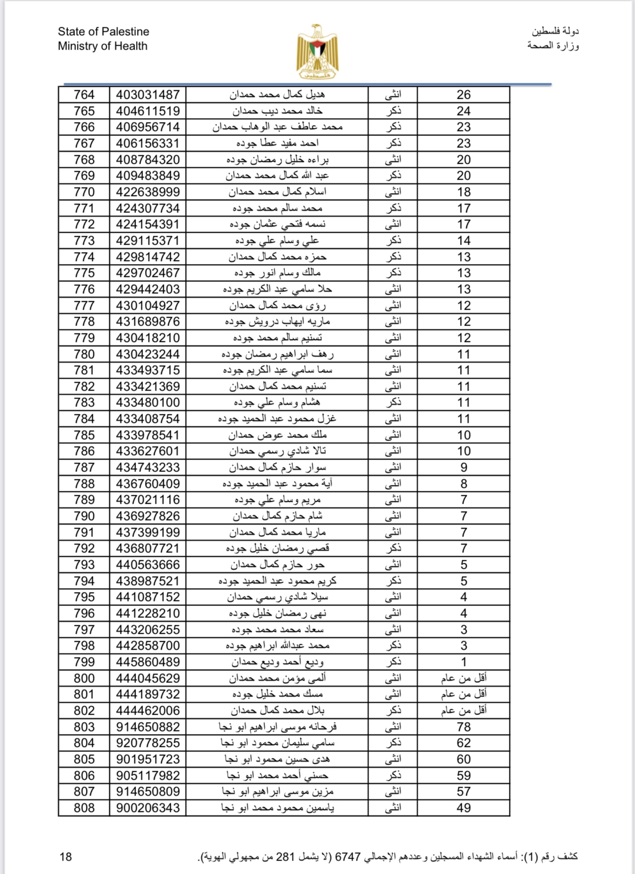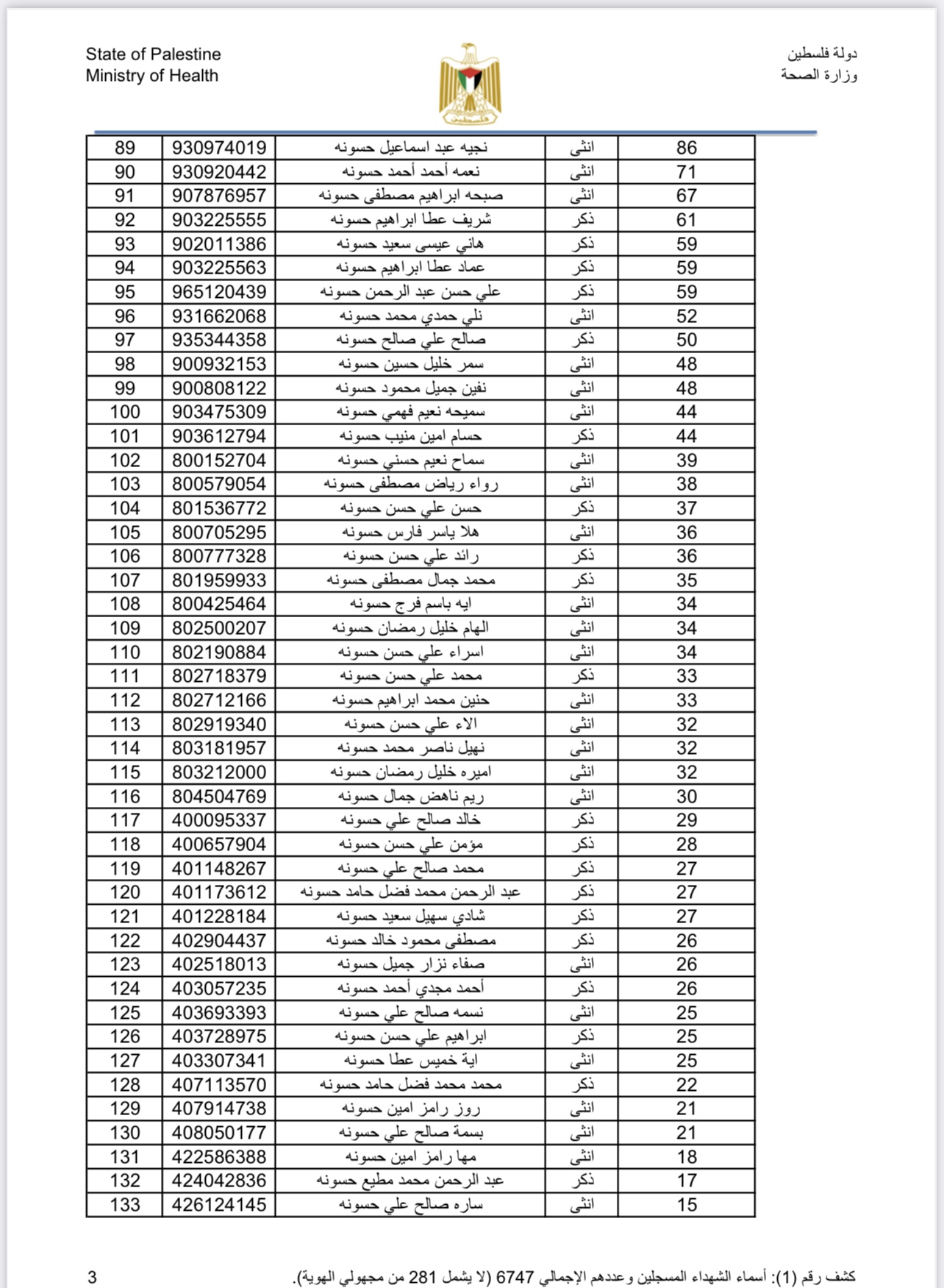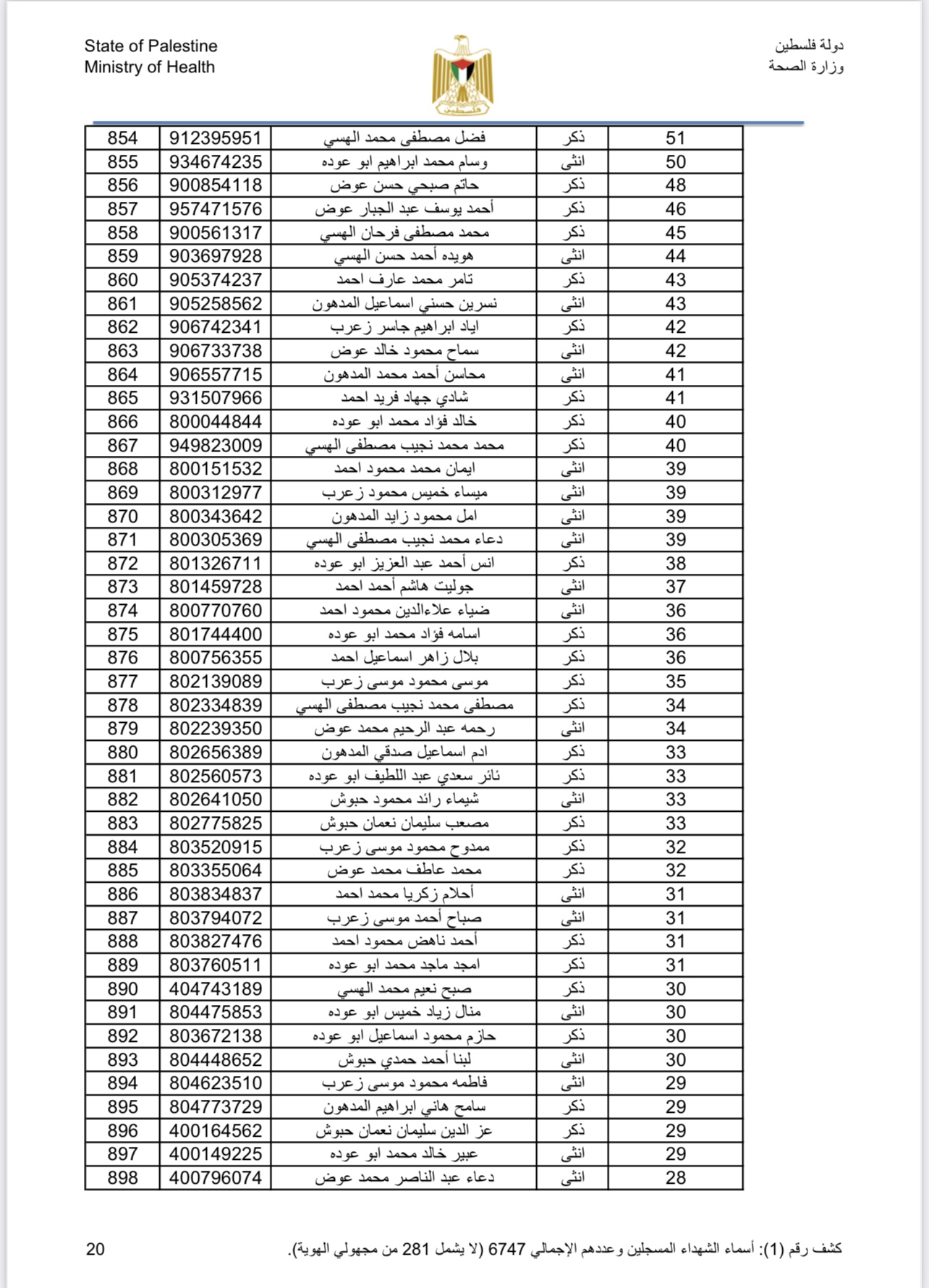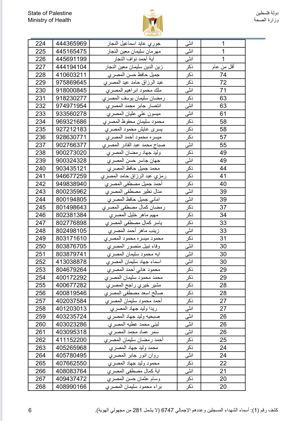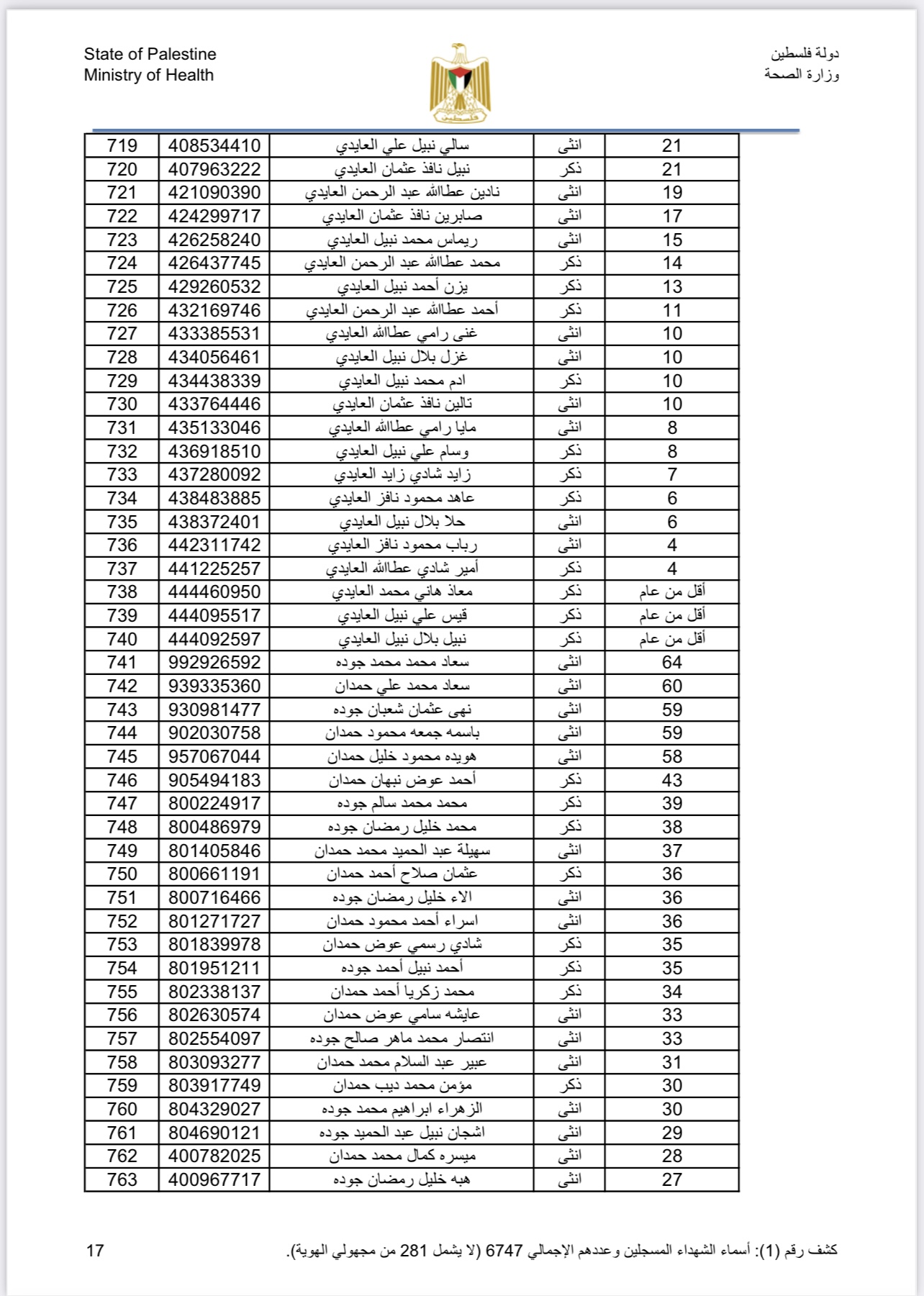 وزارة الصحة الفلسطينية تنشر أسماء شهداء غزة