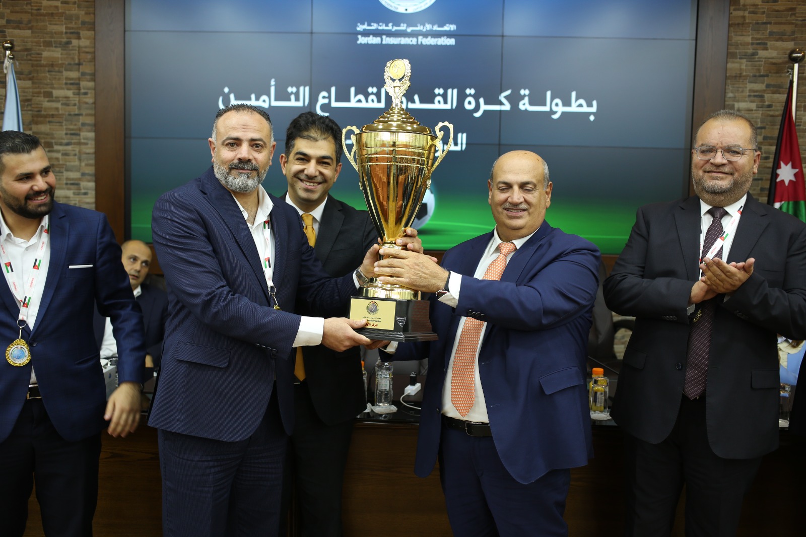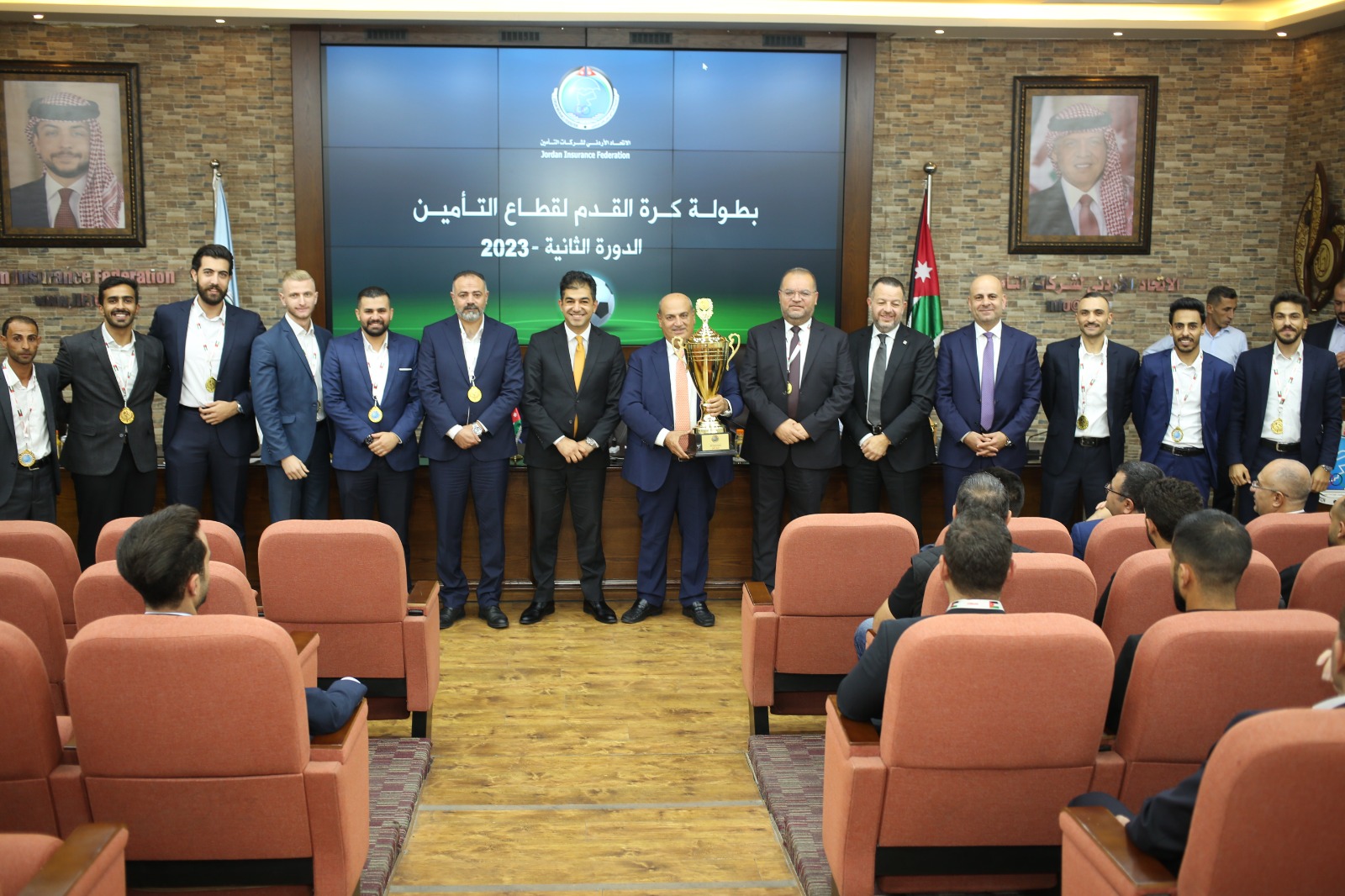 تم مساء يوم الخميس الموافق ٢٠٢٣/١١/١٦ في مقر الاتحاد الأردني لشركات التأمين اختتام بطولة كرة القدم لقطاع التأمين بدورتها الثانية، بحضور مجلس إدارة الاتحاد ومدير الاتحاد واللجنة التنفيذية للجنة الاجتماعية المشكلة في الاتحاد التي نظمت هذه البطولة للفترة من ٧/١٤ لغاية ٢٠٢٣/٨/١٨ ، على ارض ملعب أكاديمية السوسنة السوداء الدولية الرياضي (IRIS) بمشاركة 20 فريقا منها 17 شركة تأمين، و 3 شركات ادارة أعمال التأمين الطبي، حيث فاز في المباريات النهائية ثلاثة أفرقة، فريق شركة المنارة الاسلامية للتأمين حاز على المركز الأول وفريق شركة نات هيلث حاز على المركز الثاني أما فريق شركة التأمين الاردنية فقد حاز على المركز الثالث في البطولة.