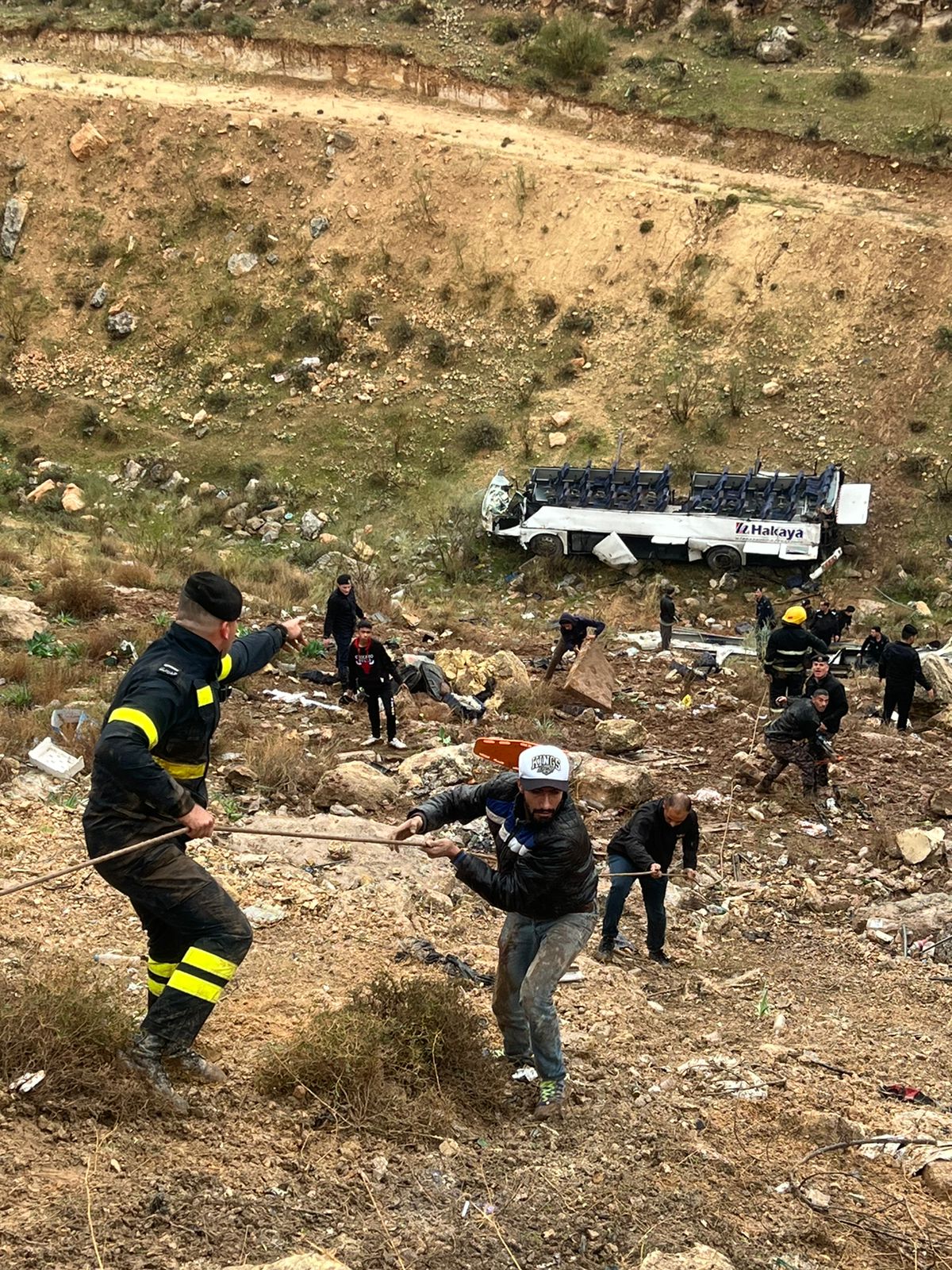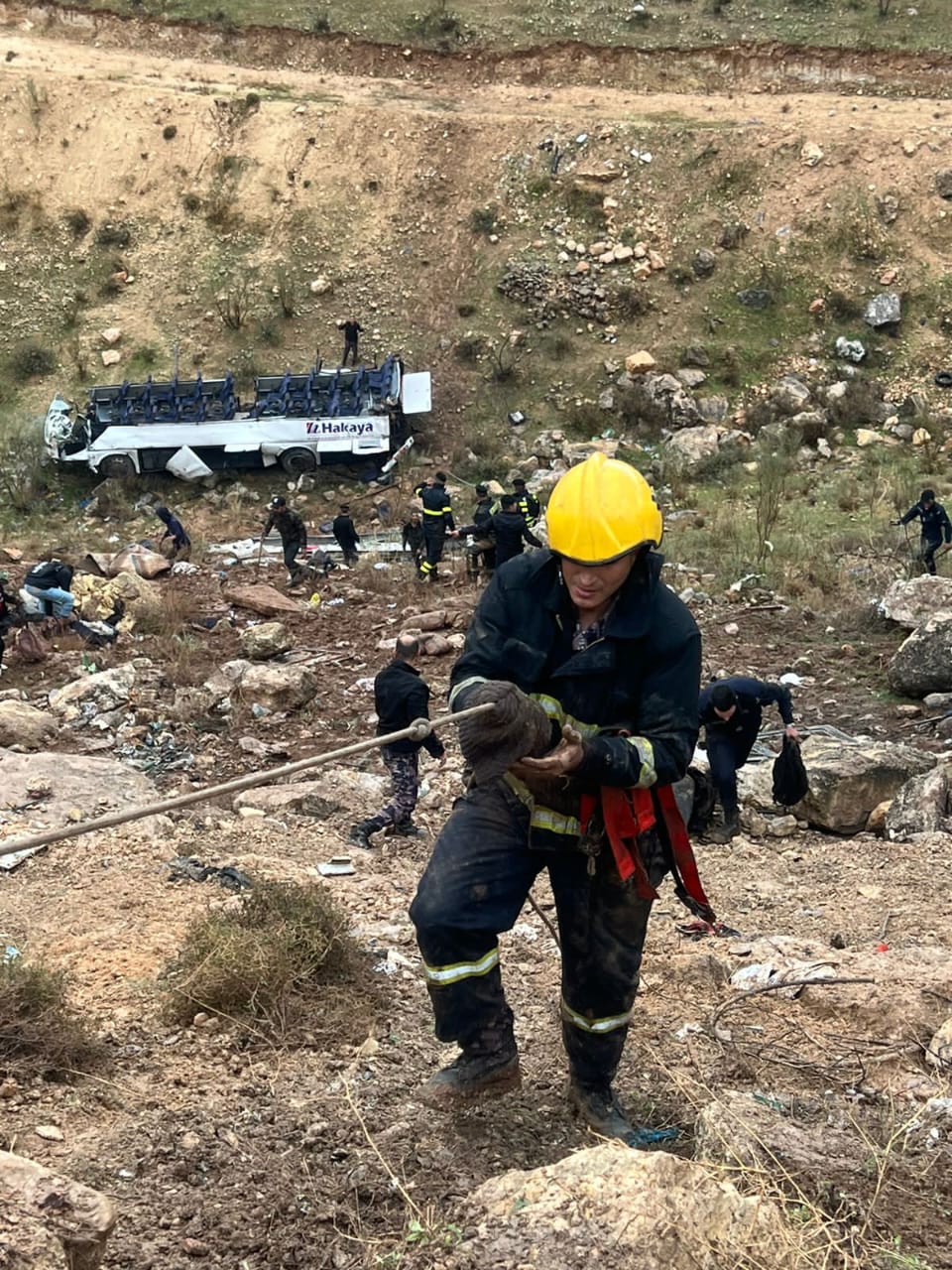 5 وفيات و 35 إصابة بحادث تدهور حافلة نقل ركاب على طريق سلحوب