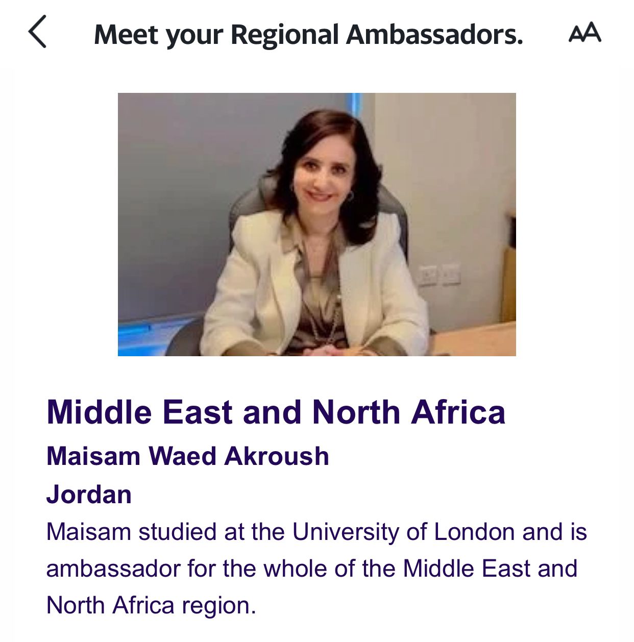 - ميسم عكروش سفيرا اقليميا لخريجي المملكة المتحدة