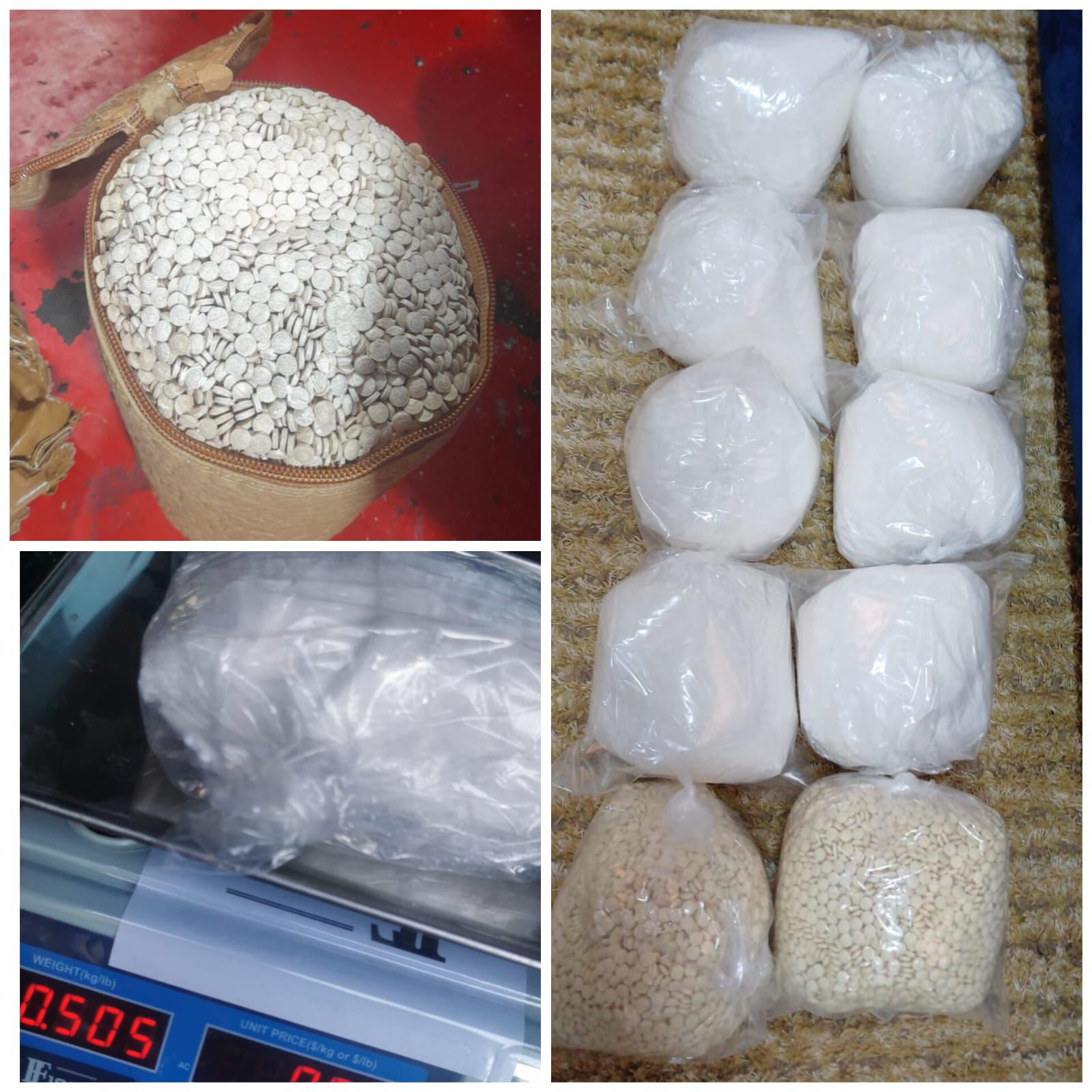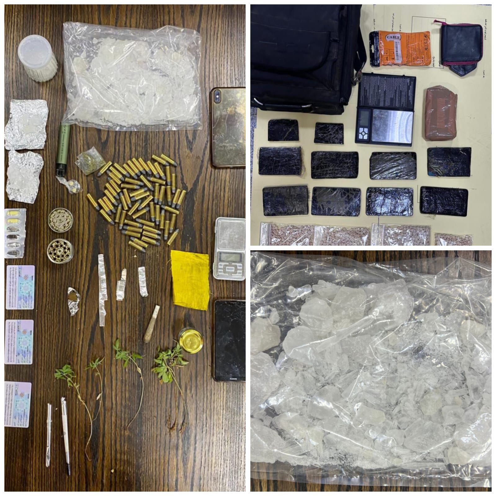 كما وأُلقي القبض في لواء الرمثا كذلك على شخصين بحوزتهما نصف كغم من مادة الكريستال المخدرة ، فيما جرى في جنوب العاصمة مداهمة مروجين خطرين للمخدرات أُلقي القبض عليهما وضبط بحوزتهما كمّيات من المواد المخدرة والذخيرة الحية .
