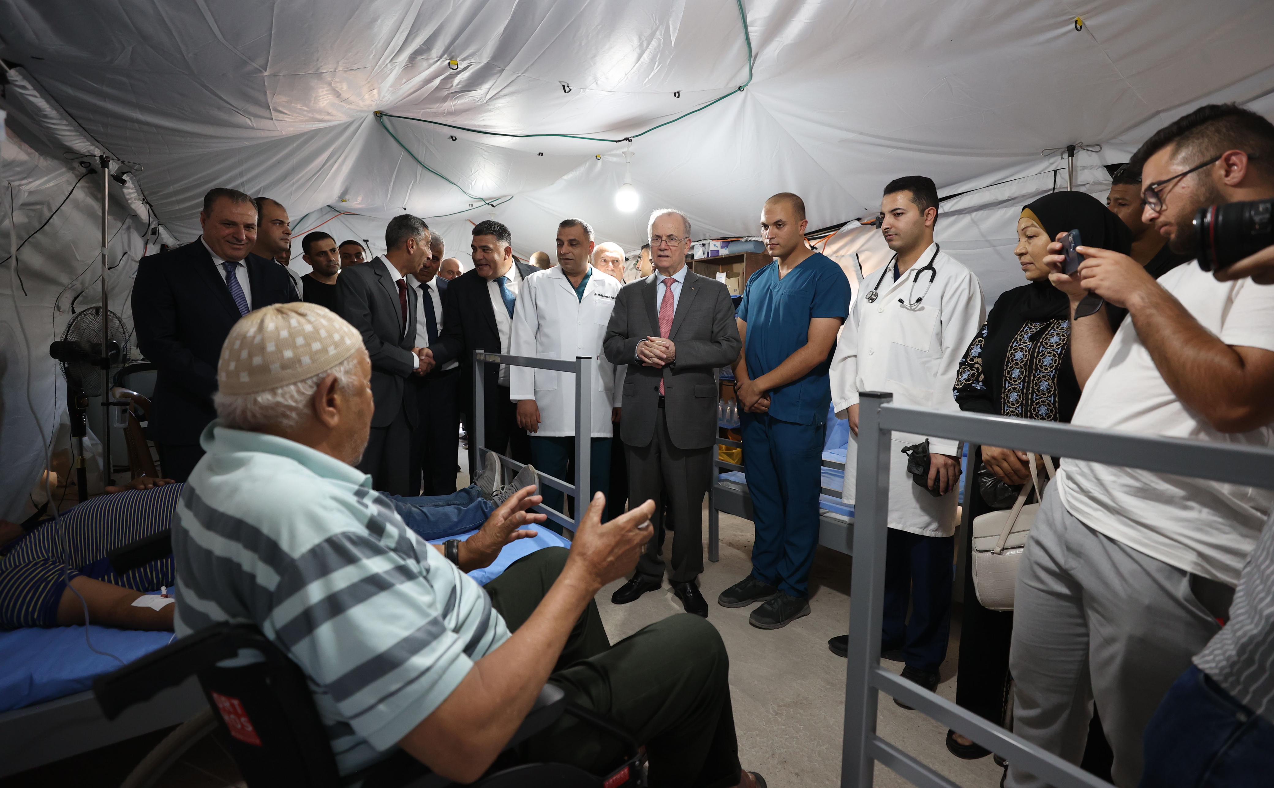 وجال رئيس الوزراء الفلسطيني والوفد المرافق له في مختلف أقسام ومرافق المستشفى، مبديا إعجابه بالدور الكبير والرسالة السامية التي تؤديها طواقم المستشفى، في تقديم مختلف أشكال الدعم الإنساني.