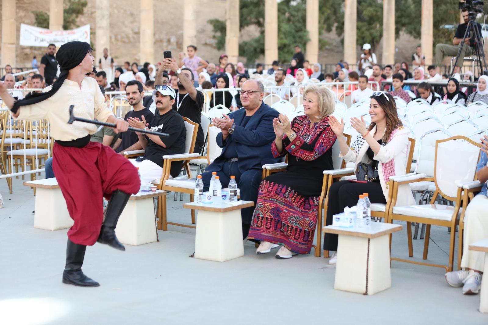 ليلة وطنية تراثية عاشها جمهور جرش للثقافة والفنون في دورته الـ38 في أمسية فنية أحيتها فرقة أوف ستيج الاستعراضية القادمة من فلسطين، بحضور رئيسة اللجنة العليا لمهرجان جرش وزيرة الثقافة هيفاء النجار والمدير التنفيذي لمهرجان جرش ايمن سماوي و التي جاءت من رام الله إلى جرش لتقدم الابداع والأصالة بعروض استثنائية.
