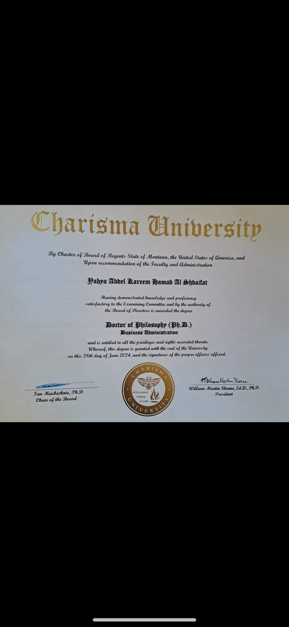 بـمـشـاعـر مليئـة بالفرح والسرور يتقدم الحاج مصطفى علي السناسله وأولاده بأجمل التهاني والتبريكات من الدكتور يحيى عبد الكريم الشديفات بمناسبة حصوله على درجة الدكتوراه في إدارة الأعمال.