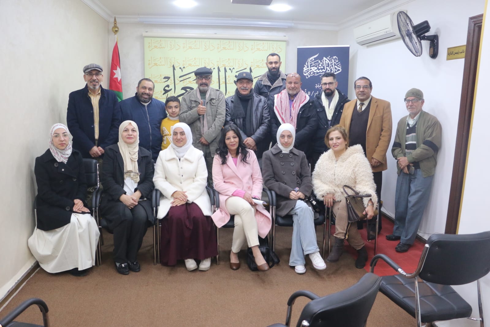 ضمن نشاطاتها المتنوعة والمتعددة اقامت دارة الشعراء امسية شعرية مساء اليوم الاثنين 13/كانون الثاني/2025 م في مقرها بعمان استضافت خلالها الشاعر اوس عدنان والشاعرة وردة سعيد حيث ادارت الامسية الاديبة والروائية فداء الحديدي بحضور رئيس الدارة الشاعر تيسير الشماسين وعدد من اعضاء الدارة بالاضافة الى عدد من الكتاب والادباء والاعلاميين والمهتمين وقد القى الشاعرين عدد من قصائدهما المتنوعة حيث شهدت الامسية تفاعلا متميزا مع الجمهور .