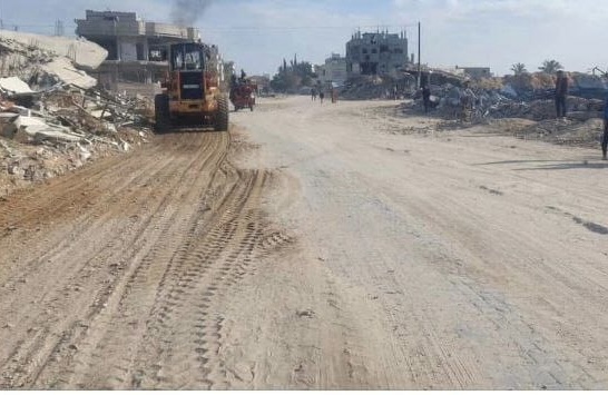 تفتح الشوارع المُغلقة بالركام لتسهيل عودة النازحين إلى منازلهم خاصة القرى الشرقية ومدينة رفح.
