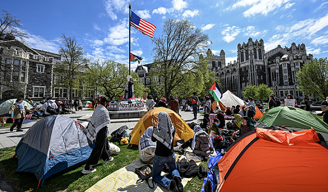 وبحسب شبكة "سي إن إن"، تجمع نحو 200 شخص، وصفتهم الجامعة بأنهم "غير منتمين لأي منظمة طلابية معترف بها"، في ساحة بينيكي المركزية داخل الحرم الجامعي، حيث نصبوا 8 خيام، ورددوا هتافات مناهضة للاحتلال مثل: "الشعب المتحد لن يهزم أبدا" و"فلسطين ستتحرر".