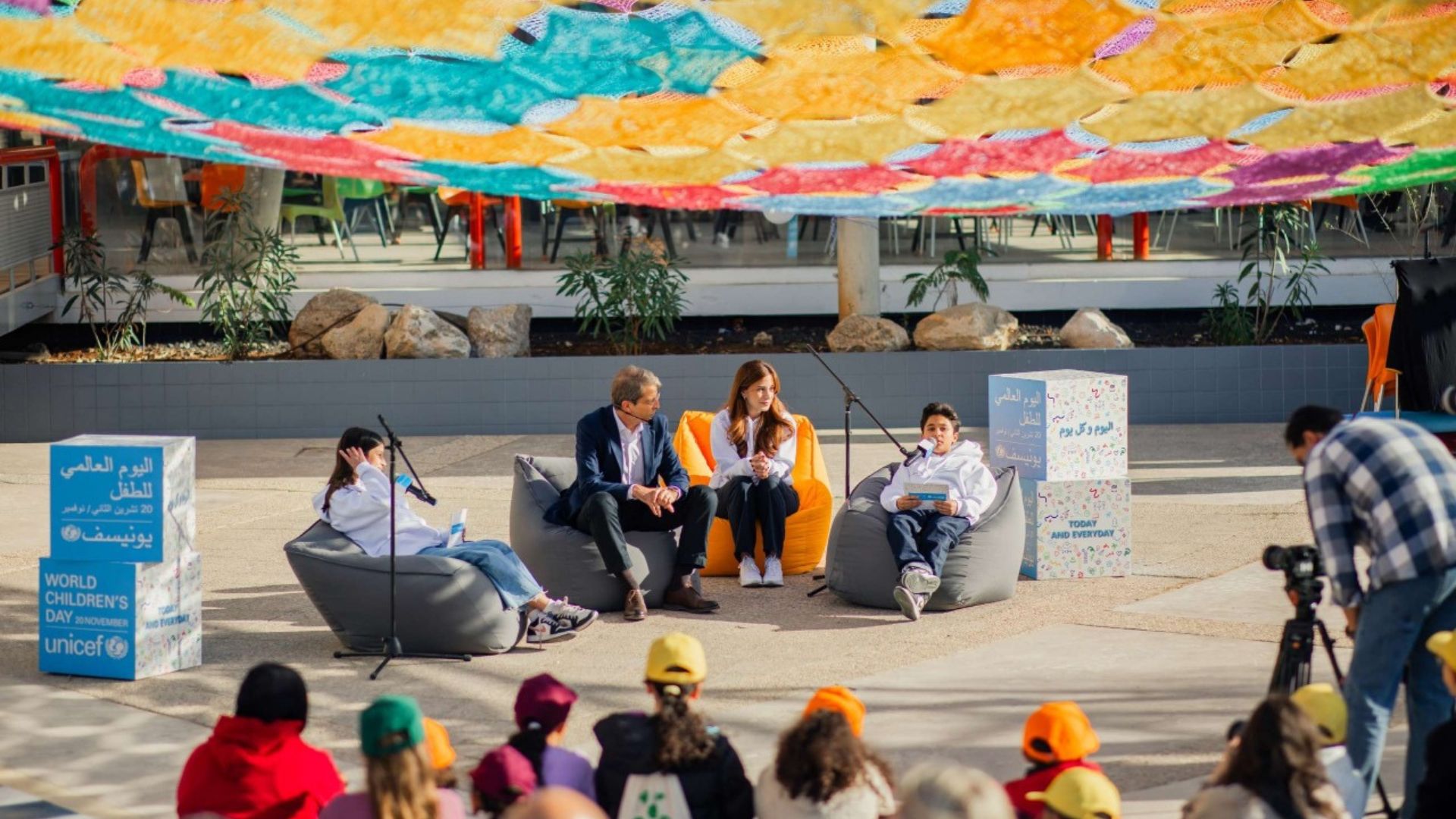 وقدم ممثل اليونيسف في الأردن مارك روبين، جلسة تفاعلية مدتها 15 دقيقة مع الأطفال، متيحا لهم فرصة طرح أسئلتهم وتبادل الأفكار للتعبير عن آرائهم وإيصال أصواتهم.