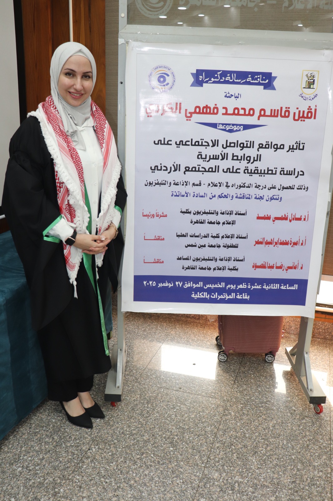 عمانيات - شهدت كلية الإعلام بجامعة القاهرة مناقشة رسالة دكتوراه مقدَّمة من الباحثة أڤين الكردي بعنوان: “تأثير مواقع التواصل الاجتماعي على الروابط الأسرية: دراسة تطبيقية على المجتمع الأردني”.