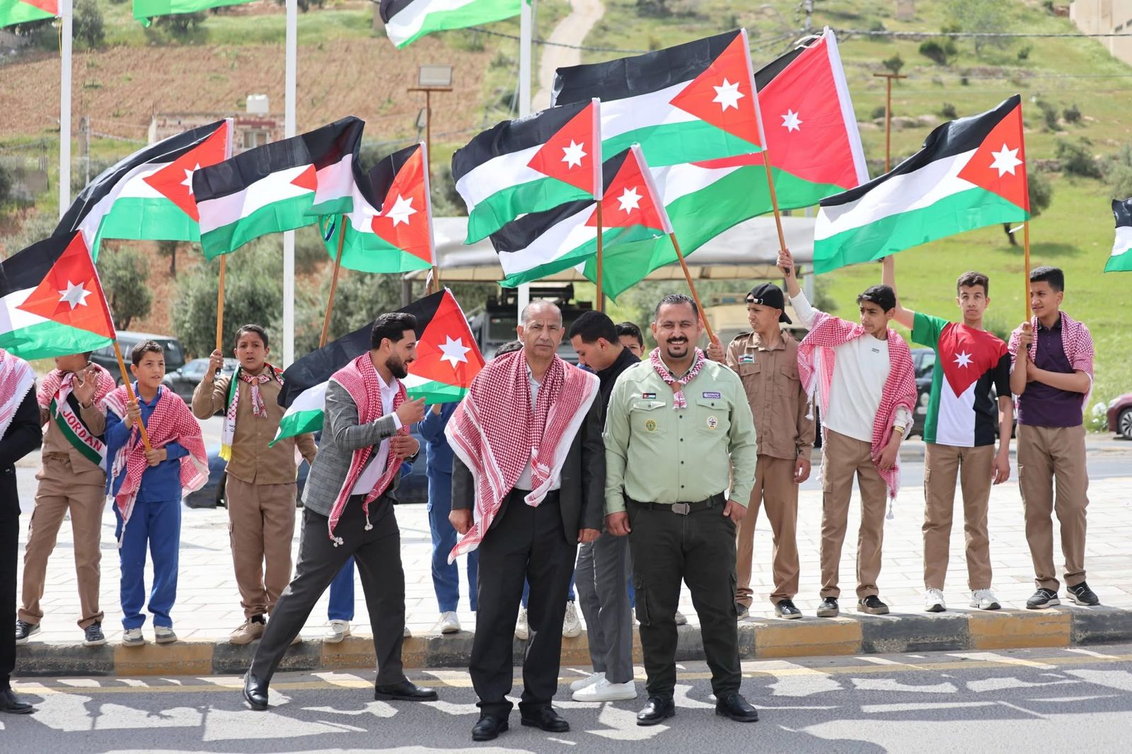 واستُهل الحفل برفع العلم على أطول سارية في محافظة الزرقاء عند دوار الدلة.