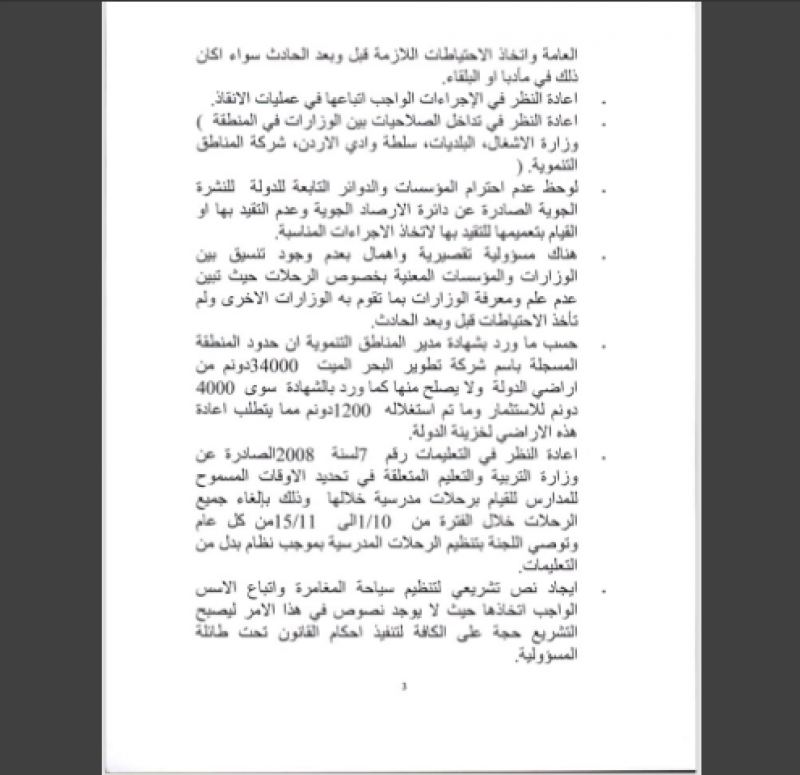 "عمانيات" تنشر توصيات "التحقيق النيابية" حول حادثة البحر الميت