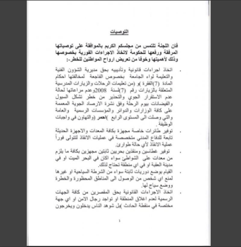 واوصت اللجنة في تقريرها النهائي على ما يلي: