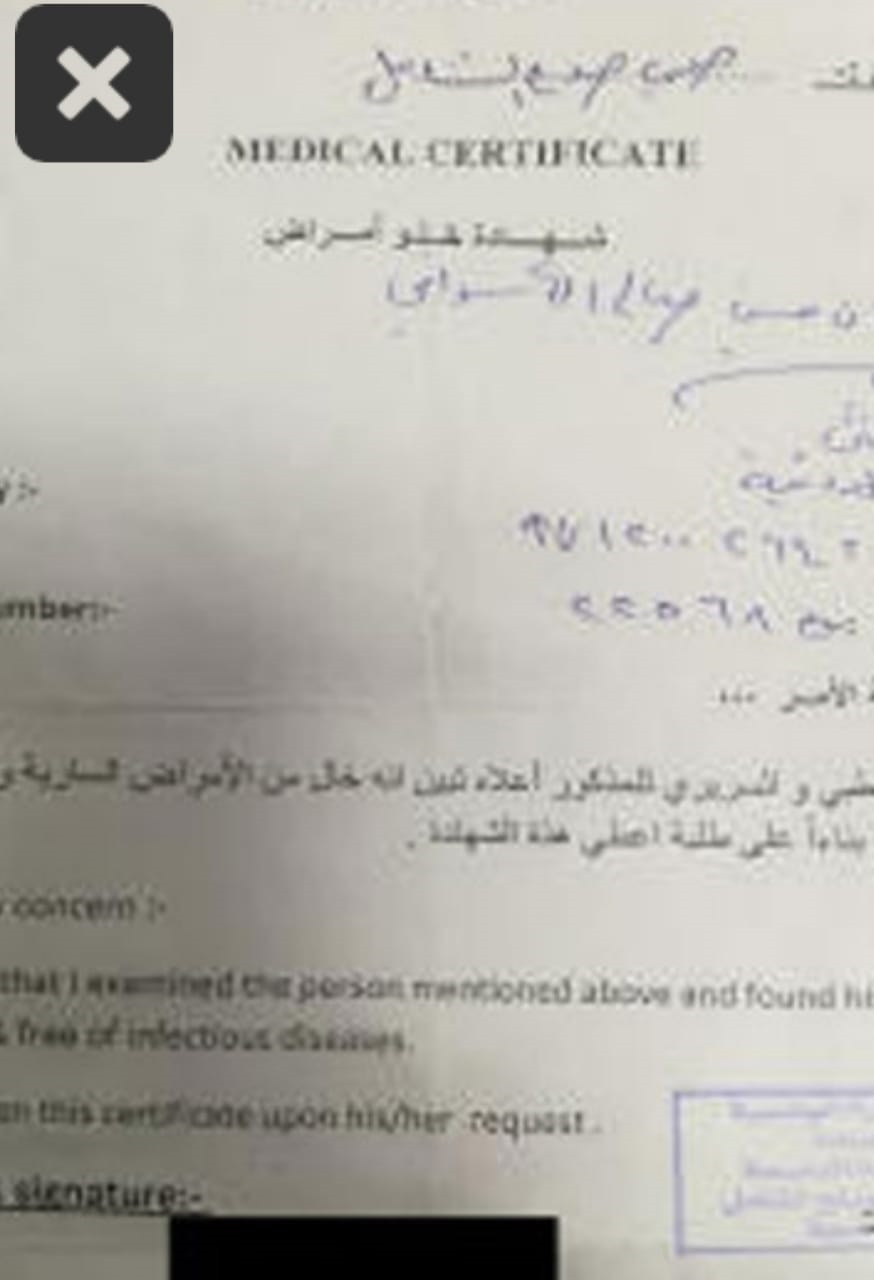 دالي ليست هي الوحيدة التي قامت بسلسلة اجراءات روتينية لإصدار شهادة خلو أمراض معدية ومزمنة. كونها وثيقة صادرة عن جهة رسمية، رغم انها لا تخضع لأي نظام أو تعليمات ولا تحمل أي رقم متسلسل لتوثيقها الكترونيا.