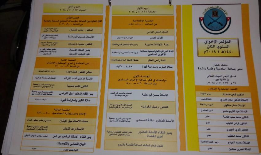 يذكر أن هذا المؤتمر السنوي الثاني لجمعية جماعة الإخوان المسلمين برعاية المراقب العام الأسبق لجماعة الإخوان المسلمين المحامي عبد المجيد ذنيبات.