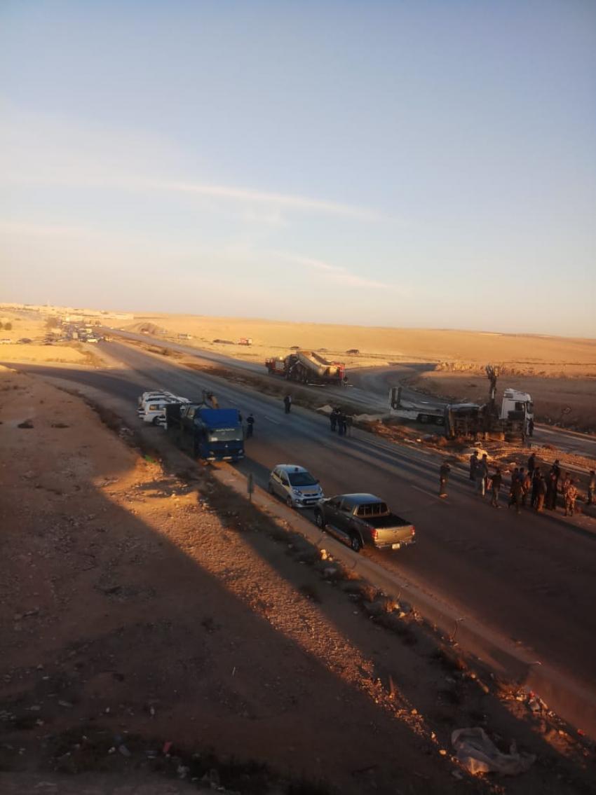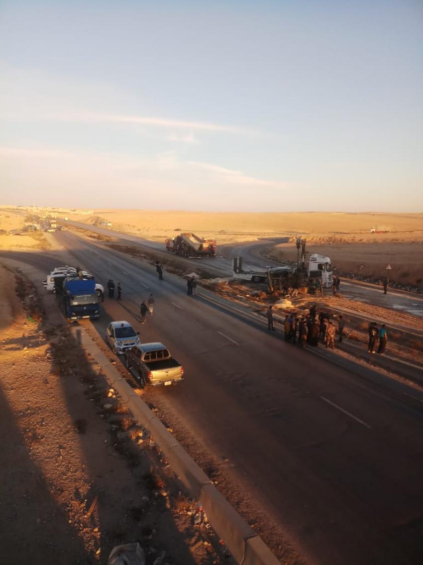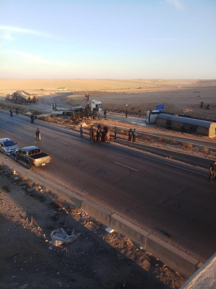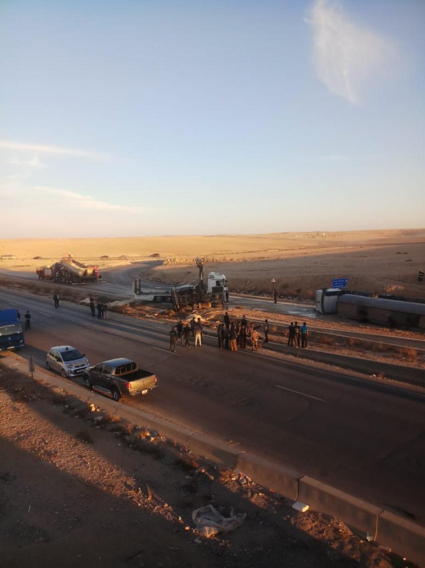 عمانيات - اصيب شخصين اثر حادث تصادم بين صهريج محمل بمادة التيون و مركبتين خصوصيتين تحت جسر الغباوي على اوتوستراد الزرقاء - المفرق.