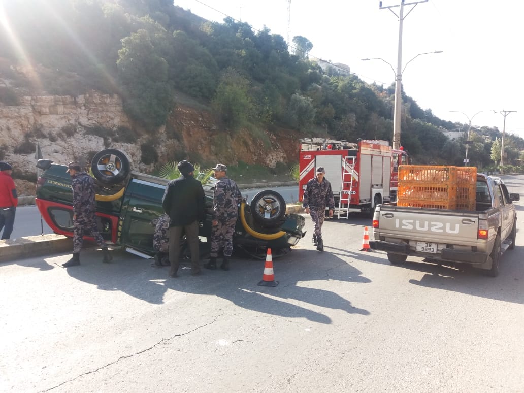 دفاع مدني عجلون تعاملت صباح اليوم مع حادث تصادم وقع ما بين مركبتين على