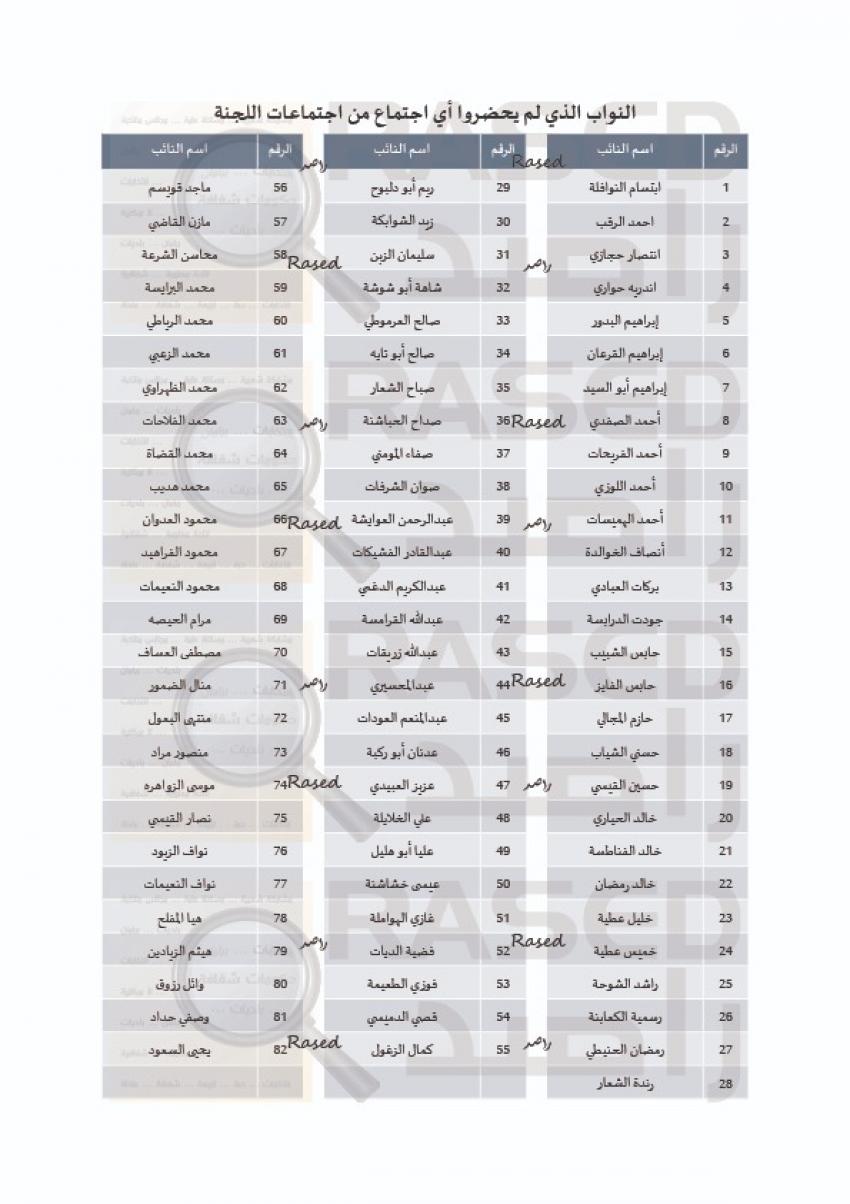 * 82 نائباً لم يحضروا أي اجتماع من اجتماعات لجنة الاقتصاد والاستثمار.