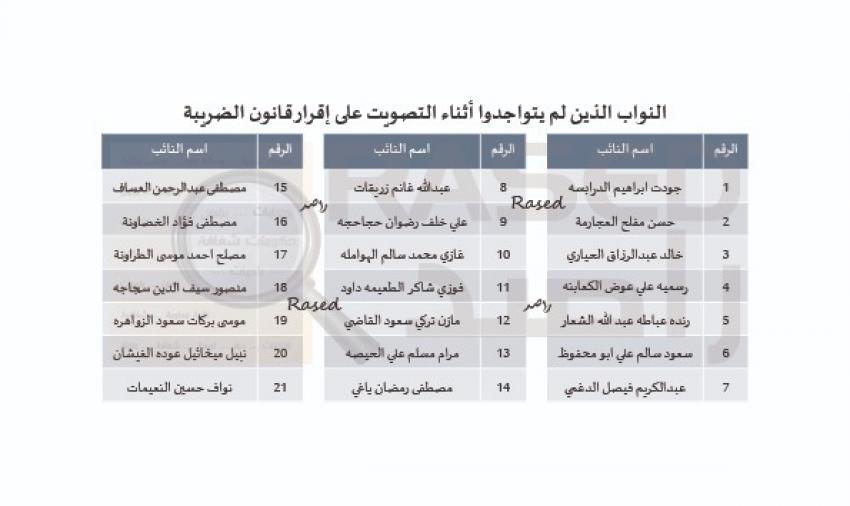 راصد: 22 نائباً تغيبوا عن التصويت على قانون الضريبة