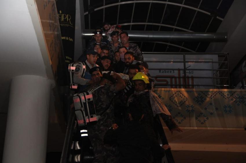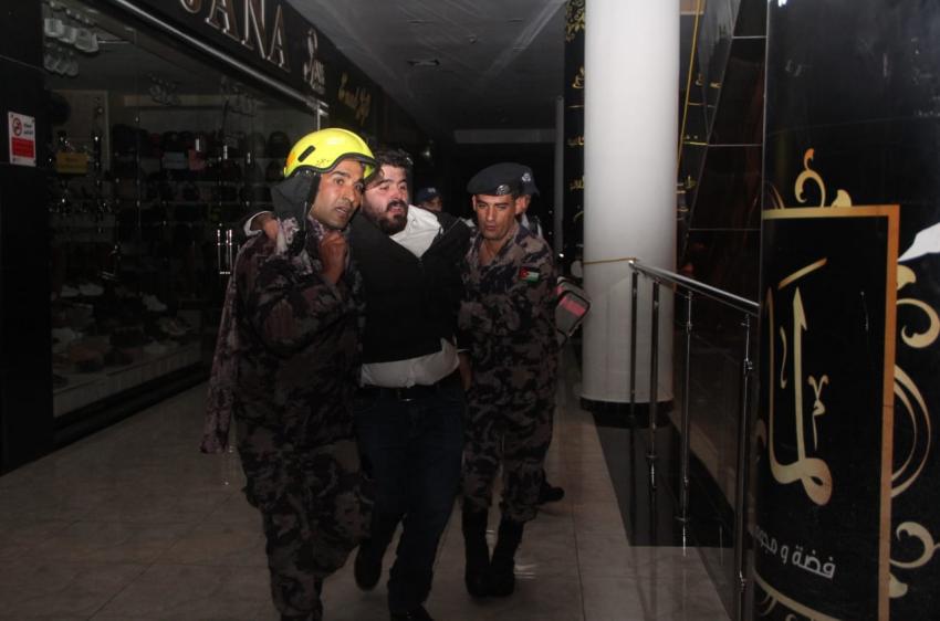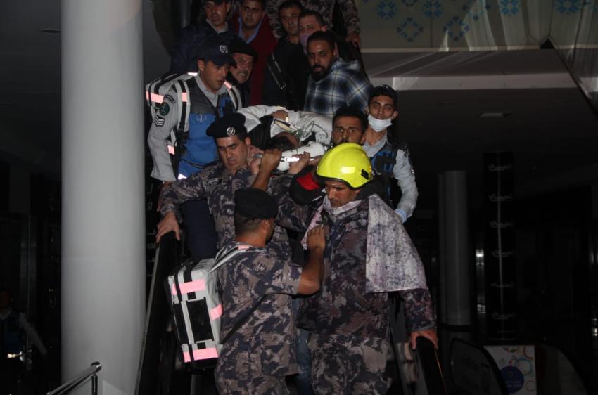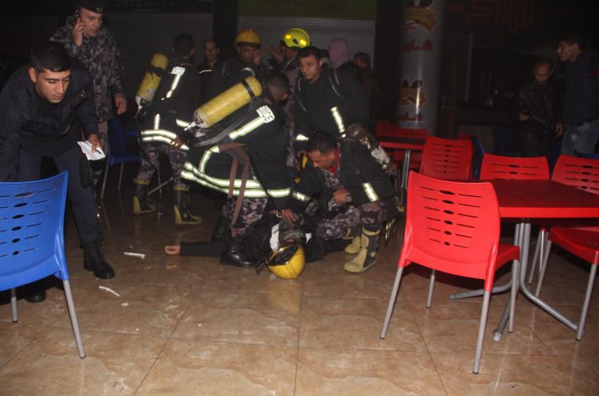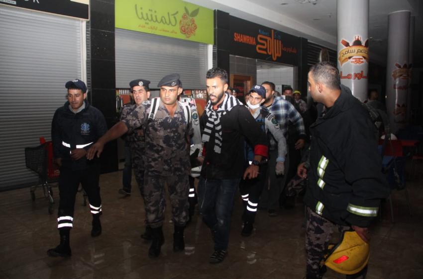 وقالت إدارة الإعلام في الدفاع المدني بان كوادر الإطفاء أخمدت الحريق الذي أمتد من غرفة عدادات الكهرباء إلى الفور سيلنج والذي قدرت مساحته ب (20) متر حيث نتج عنه إصابة ستة أشخاص بضيق بالتنفس جراء استنشاقهم الدخان الناتج عن الحريق حيث تم إسعافهم ونقلهم إلى مستشفى ماركا العسكري والأمير حمزة الحكومي وحالتهم العامة بسيطة .