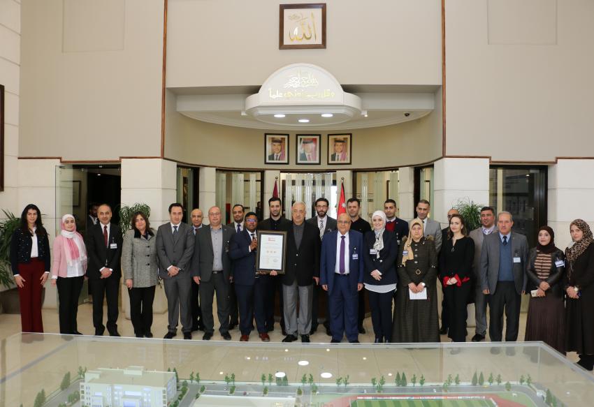 وتسلمت الجامعة شهادة التصنيف من المدير الإقليمي للمؤسسة السيد "أشون فرناندز" خلال حفل حضره رئيس مجلس أمناء الجامعة الدكتور يعقوب ناصرالدين،ونائب رئيس الجامعة الأستاذ الدكتور محمود الوادي ومساعدي الرئيس، والأساتذة عمداء الكليات ، ومساعديهم لشؤون الجودة، وكادر عمادة الاعتماد والجودة والمعلومات، وعمادة البرامج الدولية .