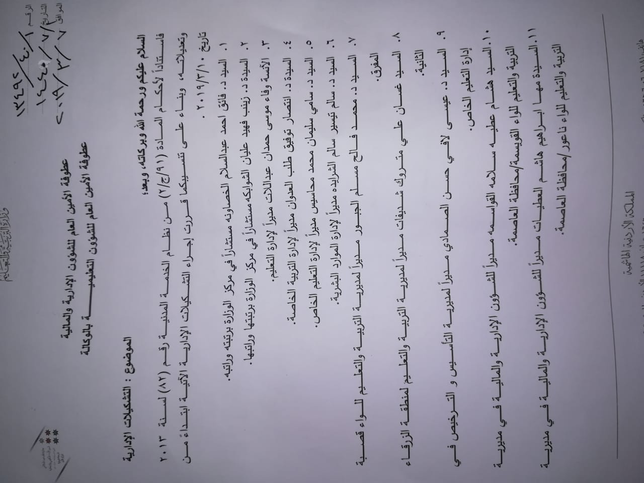 - تشكيلات إدارية في وزارة التربية والتعليم