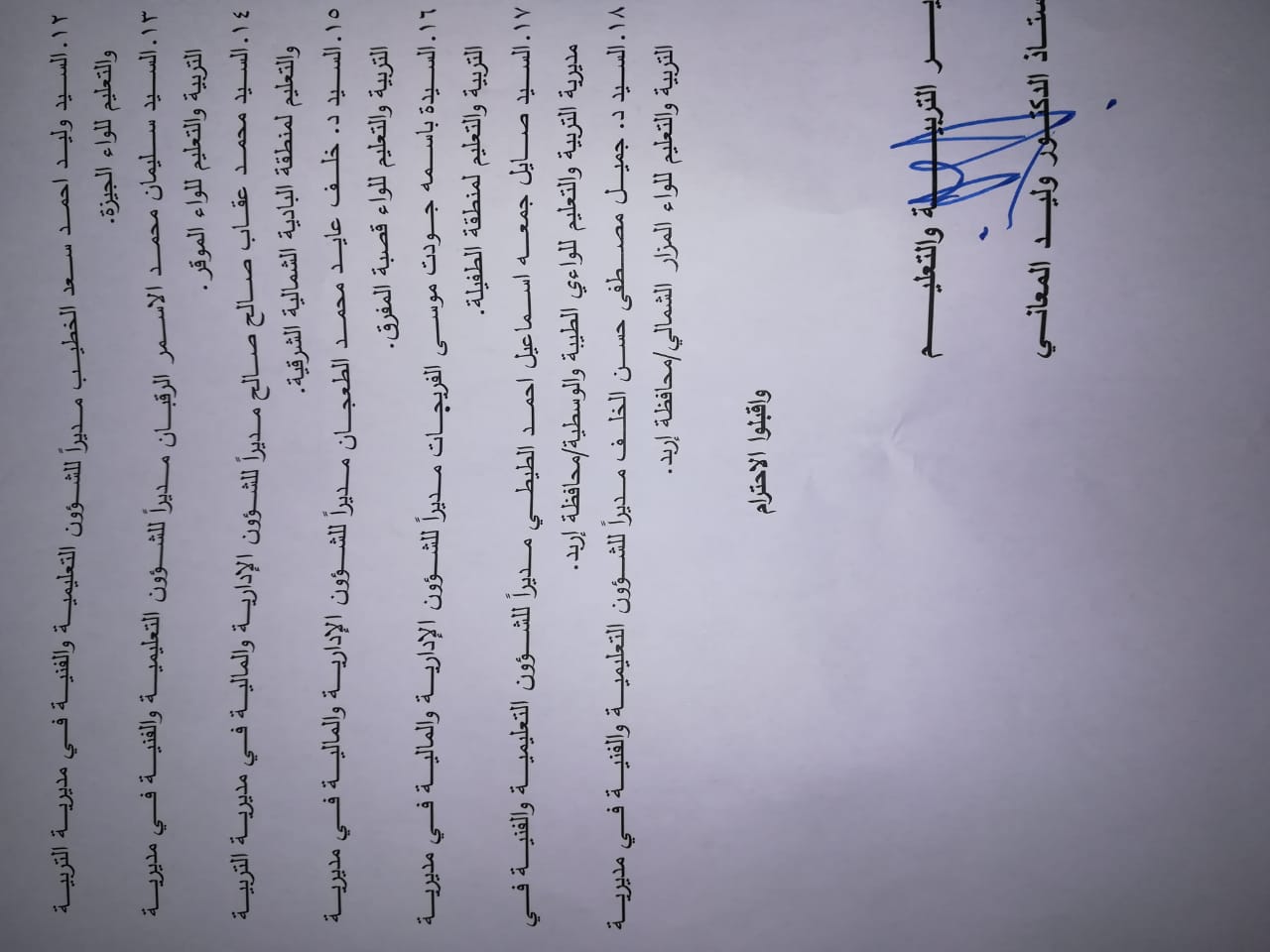وشملت التشكيلات كل من الدكتور فائق احمد عبد السلام الخصاونة مستشارا في مركز الوزارة، والدكتورة زينب فهيد عليان الشوابكه مستشارا في مركز الوزارة، ووفاء موسى حمدان عبداللات مديرا لادارة التعليم، وانتصار توفيق العدوان مديرا لإدارة التربية الخاصة، والدكتور سامي سليمان محمد محاسيس مديرا لإدارة التعليم الخاص. كما شملت التشكيلات الدكتور سالم تيسير سالم الشرايده مديرا لادارة الموارد البشرية في الوزارة ، والدكتور محمد فالح مسلم الجبور مديرا لمديرية التربية والتعليم للواء قصبة المفرق، وغسان علي متروك الشديفات مديرا لمديرية التربية والتعليم لمنطقة الزرقاء الثانية، والدكتور عيسى لافي حسن الصمادي مديرا لمديرية التأسيس والترخيص في إدارة التعليم الخاص، وهشام عطية سلامة القواسمة مديرا للشؤون الادارية والمالية في مديرية التربية والتعليم للواء القويسمة، ومها ابراهيم هاشم العطيات مديرا للشؤون الادارية والمالية في مديرية التربية والتعليم للواء ناعور. وشملت التشكيلات الإدارية كذلك، وليد احمد سعد الخطيب مديرا للشؤون التعليمية والفنية في مديرية التربية والتعليم للواء الجيزه ، وسليمان محمد الاسمر الرقبان مديرا للشؤون التعليمية والفنية في مديرية التربية والتعليم للواء الموقر، ومحمد عقاب صالح صالح مديرا الشؤون الادارية والمالية في مديرية التربية والتعليم لمنطقة البادية الشمالية الشرقية، والدكتور خلف عايد محمد الطعجان مديرا للشؤون الادارية والمالية في مديرية التربية والتعليم للواء قصبة المفرق، وباسمة جودت موسى الفريحات مديرا للشؤون الادارية والمالية في مديرية التربية والتعليم لمنطقه الطفيلة، وصايل جمعه اسماعيل احمد الطيطي مديرا للشؤون التعليمية والفنية في مديرية التربية والتعليم للوائي الطيبة والوسطية، والدكتور جميل مصطفى حسن الخلف مديرا للشؤون التعليمية والفنية في مديرية التربية والتعليم للواء المزار الشمالي.