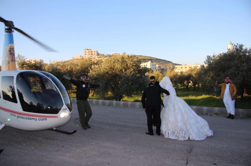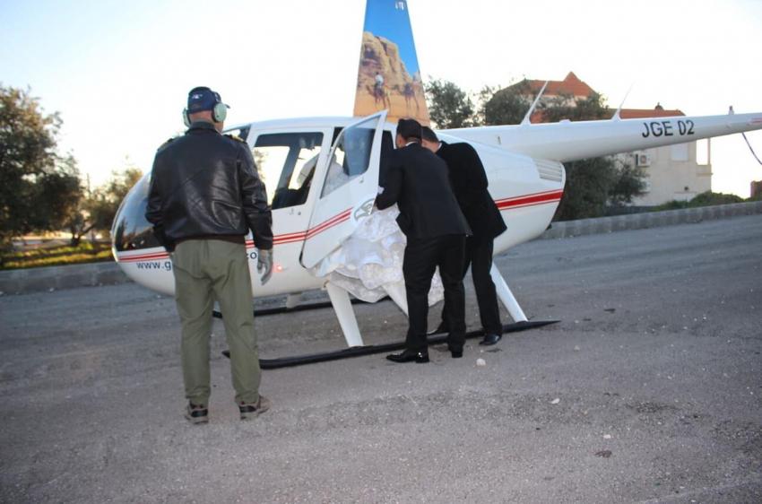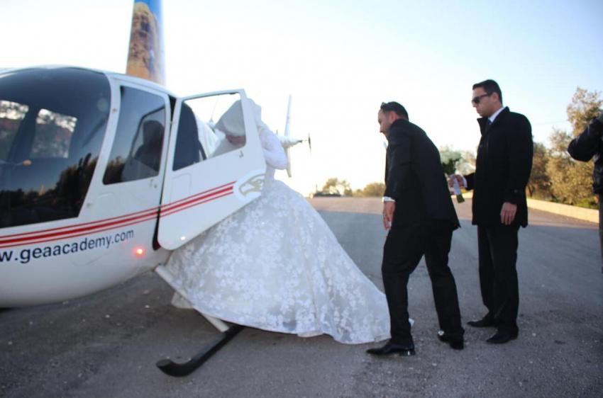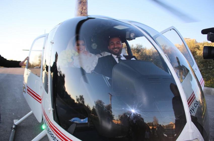للمرة الأولى بالأردن .. عريس يزف عروسه بطائرة هليكوبتر-فيديو