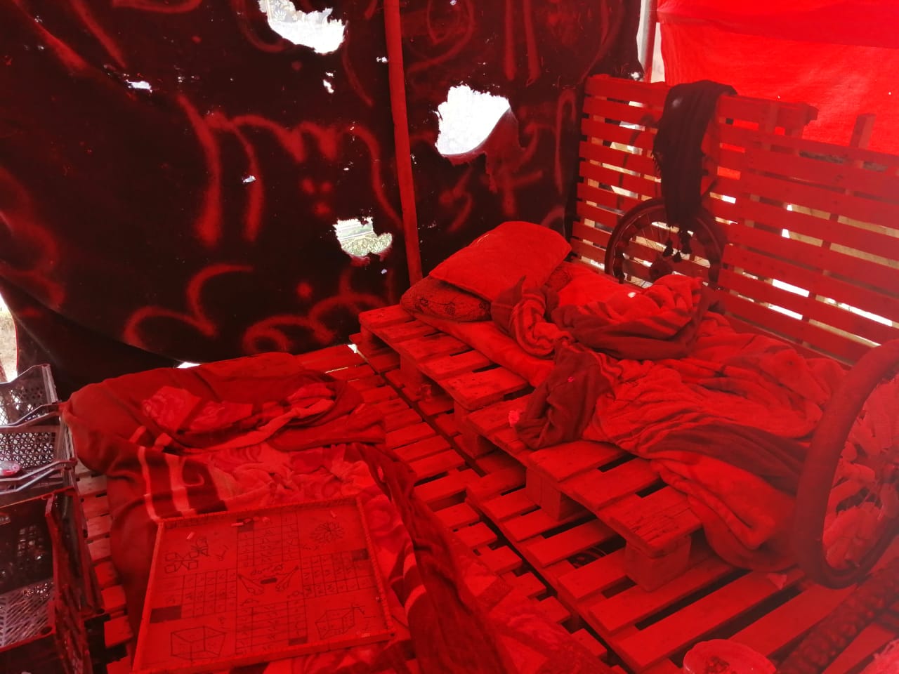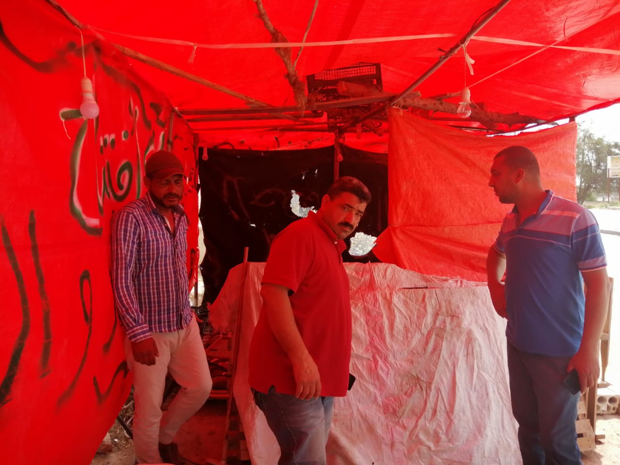 اضطررت الى ترك المنطقة وبناء معرش من الخشب (خيمة) واحطها بشادر بلاستيك ،وما زلت أعيش فيها على الشارع الرئيسي في بلدة المشارع.