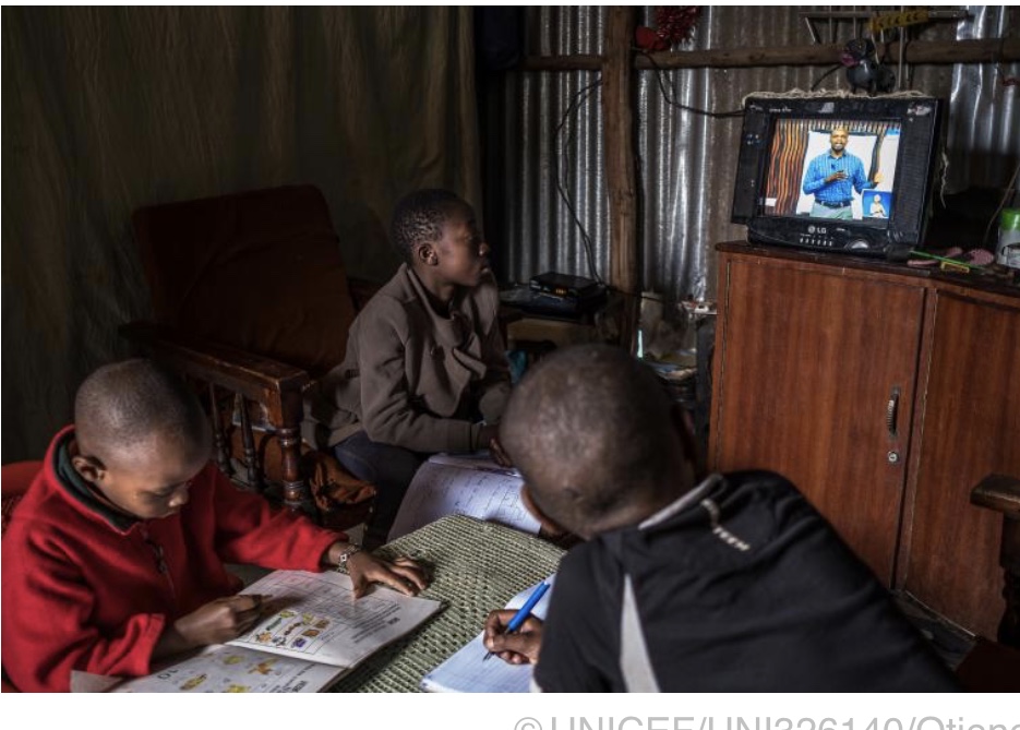 منذ وقوع جائحة كوفيد-19، شهدت أنظمة التعليم تحولات سريعة في بلدان عديدة لدعم الأطفال بالتعلّم عن بُعد، بما في بلدان منطقة غرب ووسط أفريقيا، بما في ذلك كوت ديفوار، وجمهورية الكونغو الديمقراطية، ونيجريا، تعمل الحكومات مع مزودي الخدمة المحليين لتقديم التعليم عبر الإنترنت للأطفال في سن الدراسة الابتدائية والمتوسطة، وذلك من خلال البث الإذاعي والبث التلفزيوني وتوزيع المواد المطبوعة.