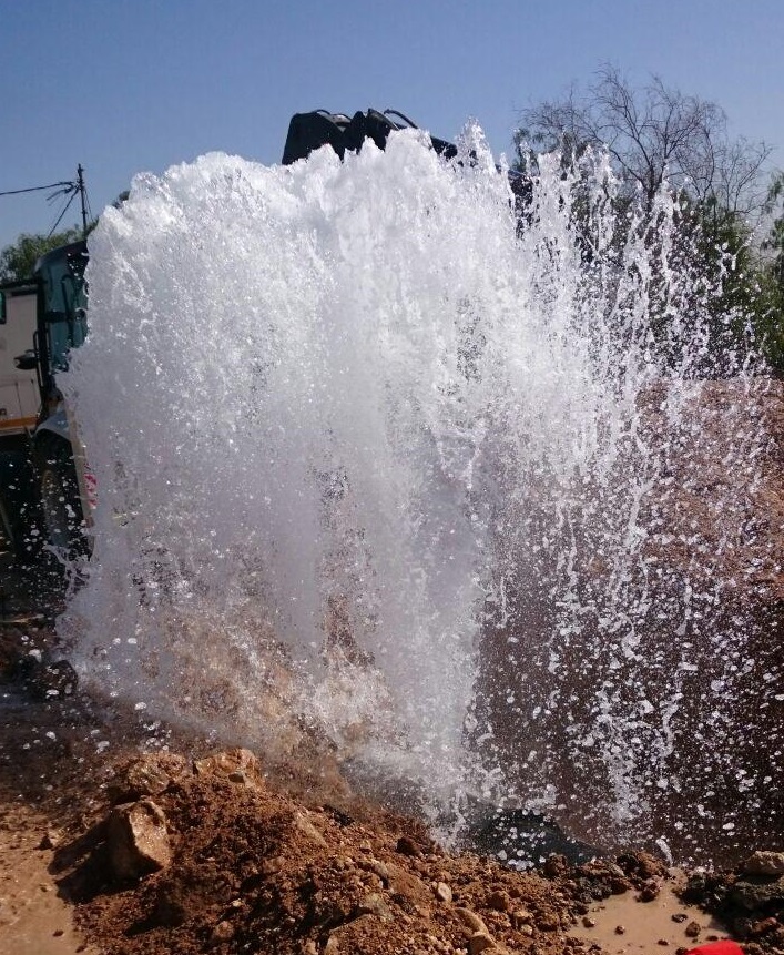 كسر خط مياه ناقل يوقف الضخ عن منطقة الصريح