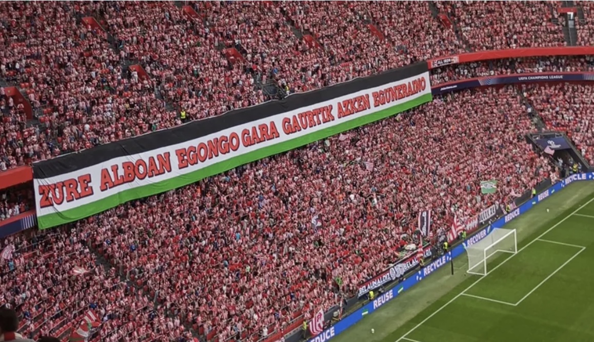 جماهير أتلتيك بلباو ترفع الأعلام الفلسطينية في دوري أبطال أوروبا
