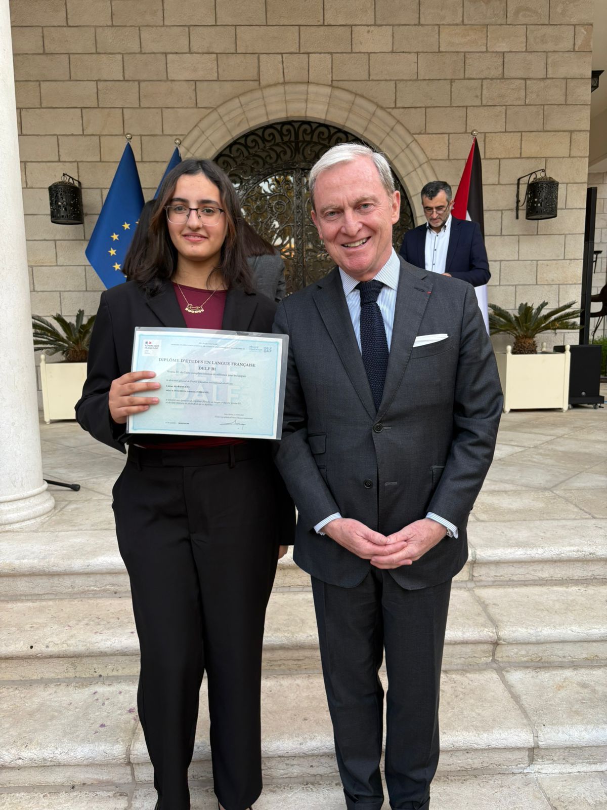 السفير الفرنسي يكرم الطالبة لمار الراميني لتفوقها بامتحان اللغة الفرنسية المدرسي