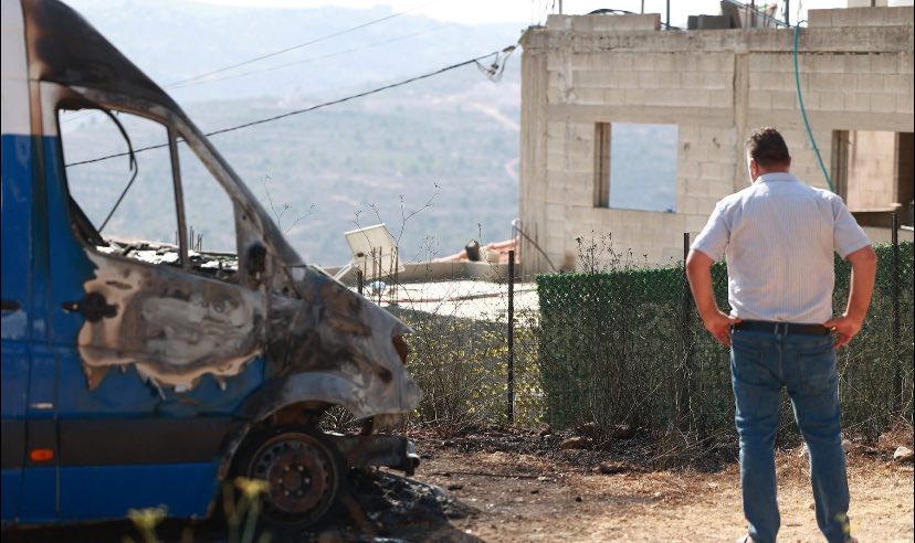 مستوطنون يحرقون 4 مركبات و منزلا ويخطون شعارات عنصرية شمال رام الله
