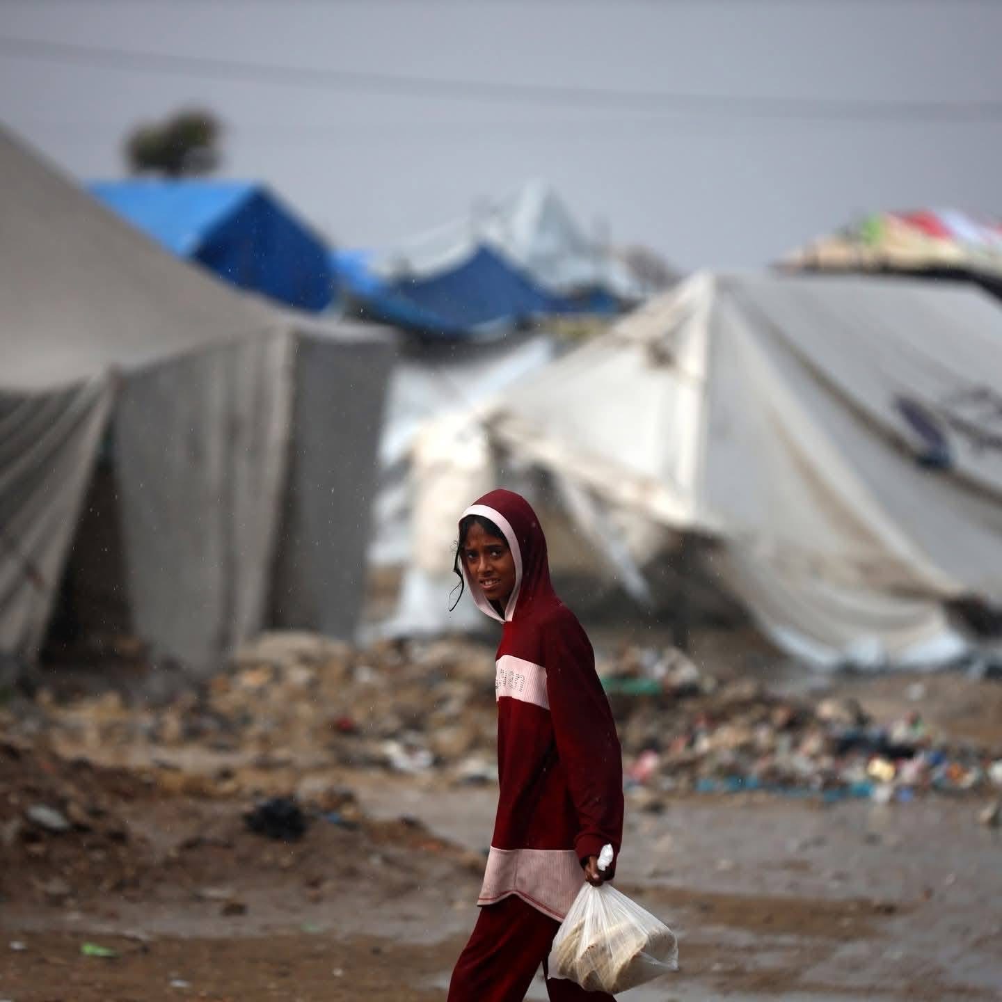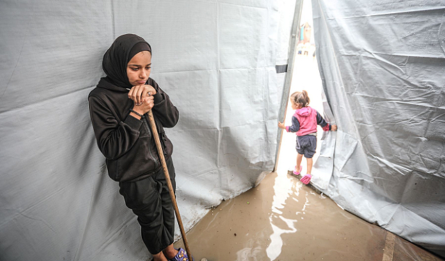 مياه الأمطار تتسلل إلى أجساد أهالي غزة بعدما تمزقت خيامهم