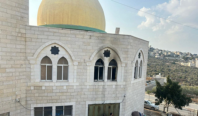 مستوطنون يحرقون مسجدا غرب سلفيت ويخطون شعارات عنصرية