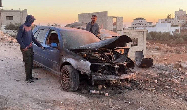 مستوطنون يهاجمون مناطق بالضفة ويضرمون النار في ثلاث مركبات
