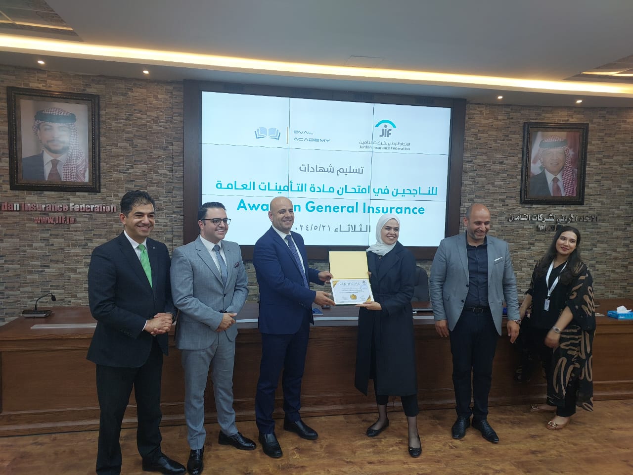 الرئيس التنفيذي للاتحاد الأردني لشركات التأمين يحتفي بكوكبة من الناجحين في الدفعة الأولى في امتحان مادة التأمينات العامة Award in General Insurance ضمن شهادةCII ويسلم الشهادات للناجحين
