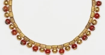 وأضافت: أنه تم وضع هذه القطع في المتحف الأثري المحلي، ويبدو أن العناصر التي تشكل قلادتنا ربما تم تهريبها خارج البلاد ثم تم تجميعها معًا لتشكيل هذه القطعة من المجوهرات.