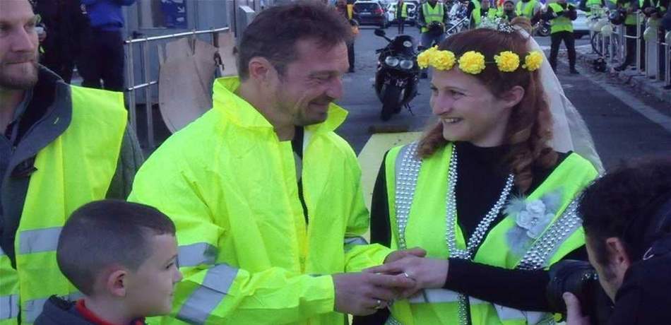 وقال موقع 'إر تي إل' الفرنسي إن احتجاجات أصحاب السترات الصفراء في بلدية تارب الفرنسية، السبت الماضي، شهدت زواج حبيبين أمام المحتجين، الذين فاق عددهم 200.